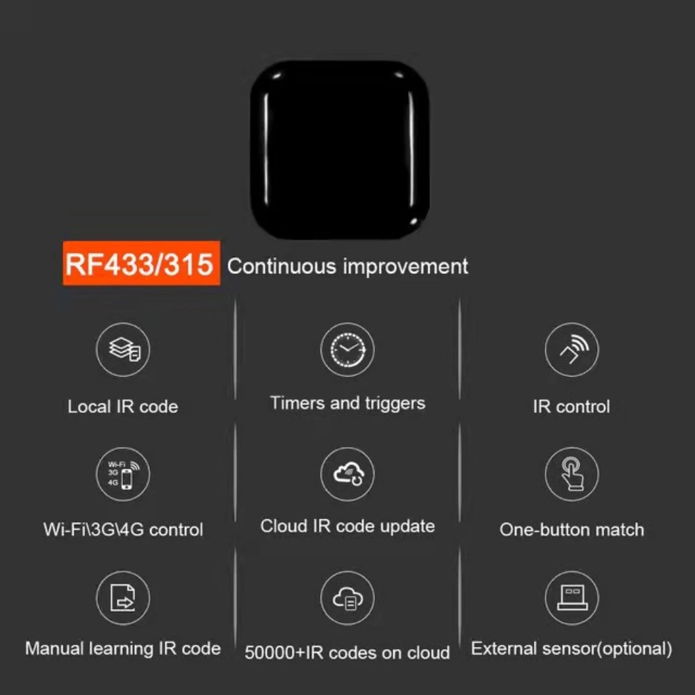 2. Радиочастотный протокол с несколькими пультами дистанционного управления обеспечивает лучший пользовательский опыт для управления различными радиочастотными устройствами 433 МГц в качестве мотора занавесок, переключателя на светильник; Локальный ИК-код для более быстрого ответа.