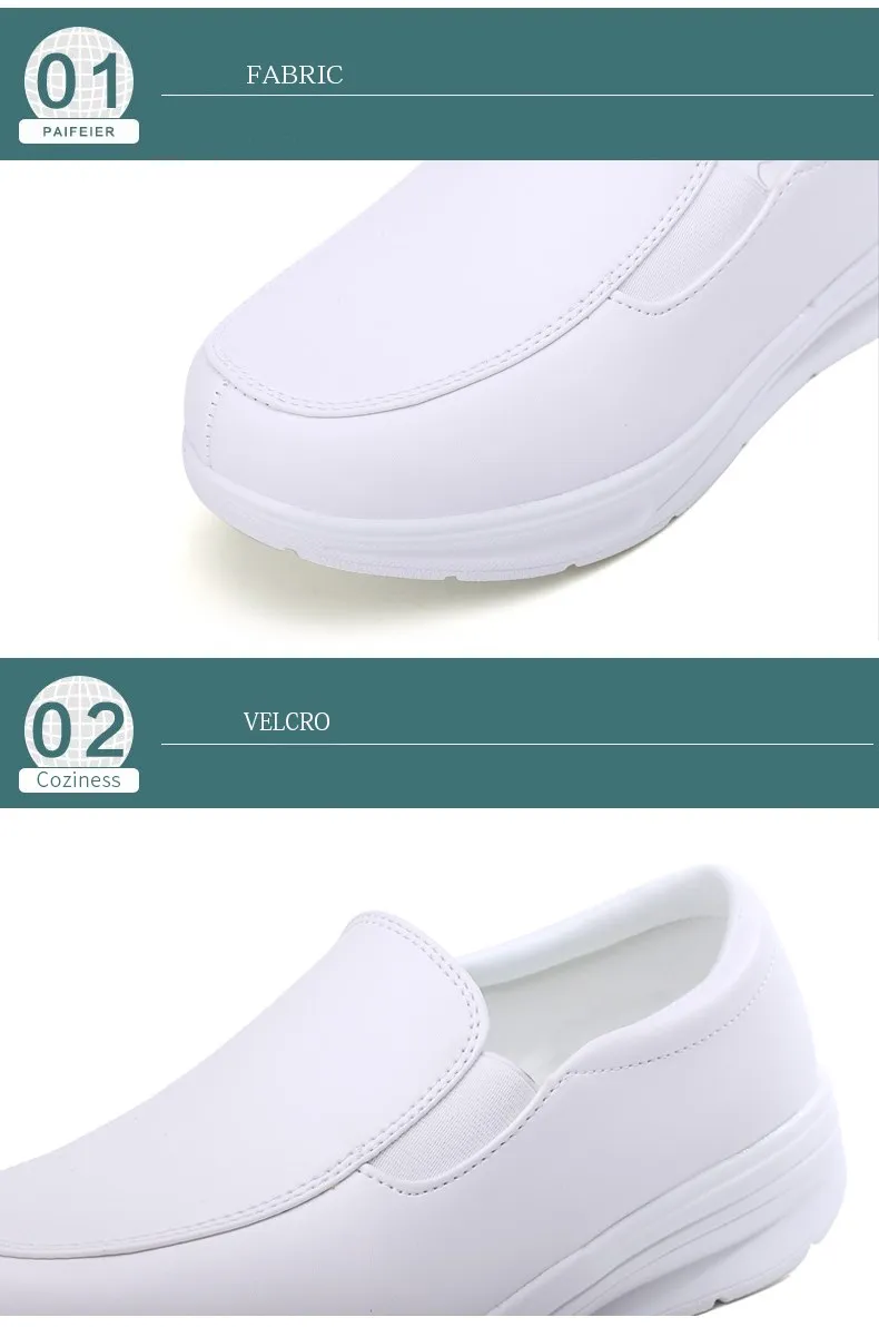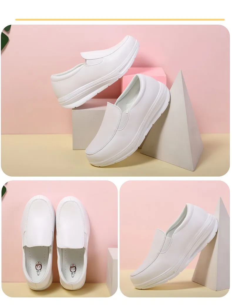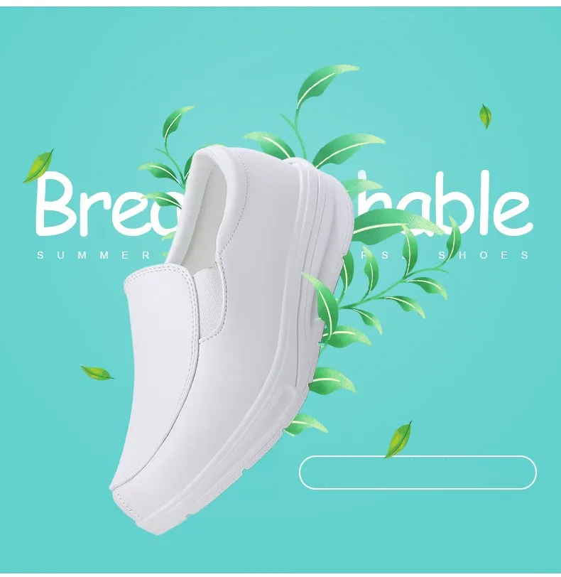 Туфли женские на танкетке, прогулочная обувь, лоферы, без застежки, толстая подошва, удобные, для медсестер, Рабочая обувь, белые