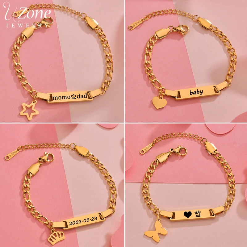 UZone на заказ выгравированное имя для детей из нержавеющей стали Сердце Браслеты с бабочками персонализированные ручные цепи подарок на день рождения детей