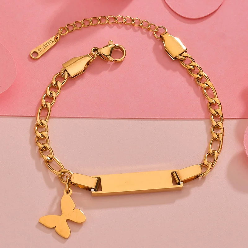 UZone пользовательская гравировка имени ребенка нержавеющая сталь Сердце Браслеты с бабочками Персонализированная ручная цепочка детский подарок на день рождения