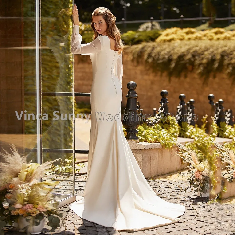 Простое мягкое атласное свадебное платье-Русалка 2022, свадебные платья с квадратным вырезом и длинными рукавами, халат Марие на спине с пуговицами