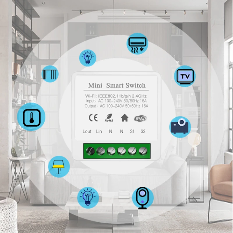 Например, переустановка настольной лампы в умную настольную лампу, и мобильный телефон может управлять переключателем светильник. Чтобы превратить светильник вниз в умный вниз светильник, вам нужно только подключить модуль smart switch к переключателю, а затем Alexa/Google assistant может управлять переключателем светильник.