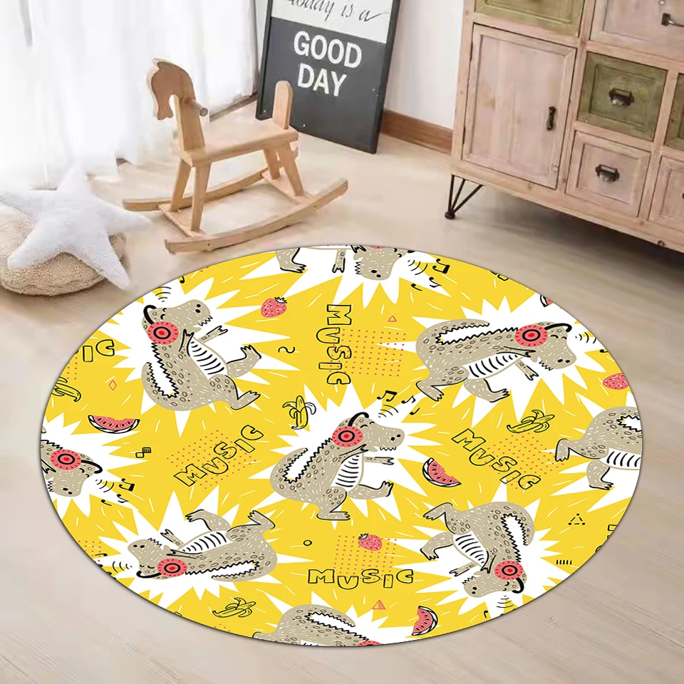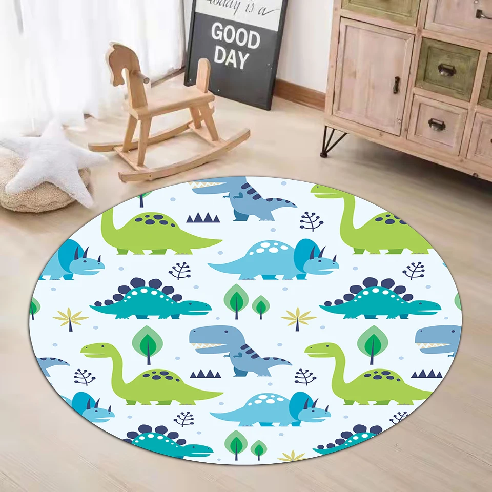 Коврик с динозавром из мультфильма, мягкий фланелевый круглый ковер из пенопласта для детей, спальни, гостиной, гостиной, Kawaii, нескользящий коврик, моющийся
