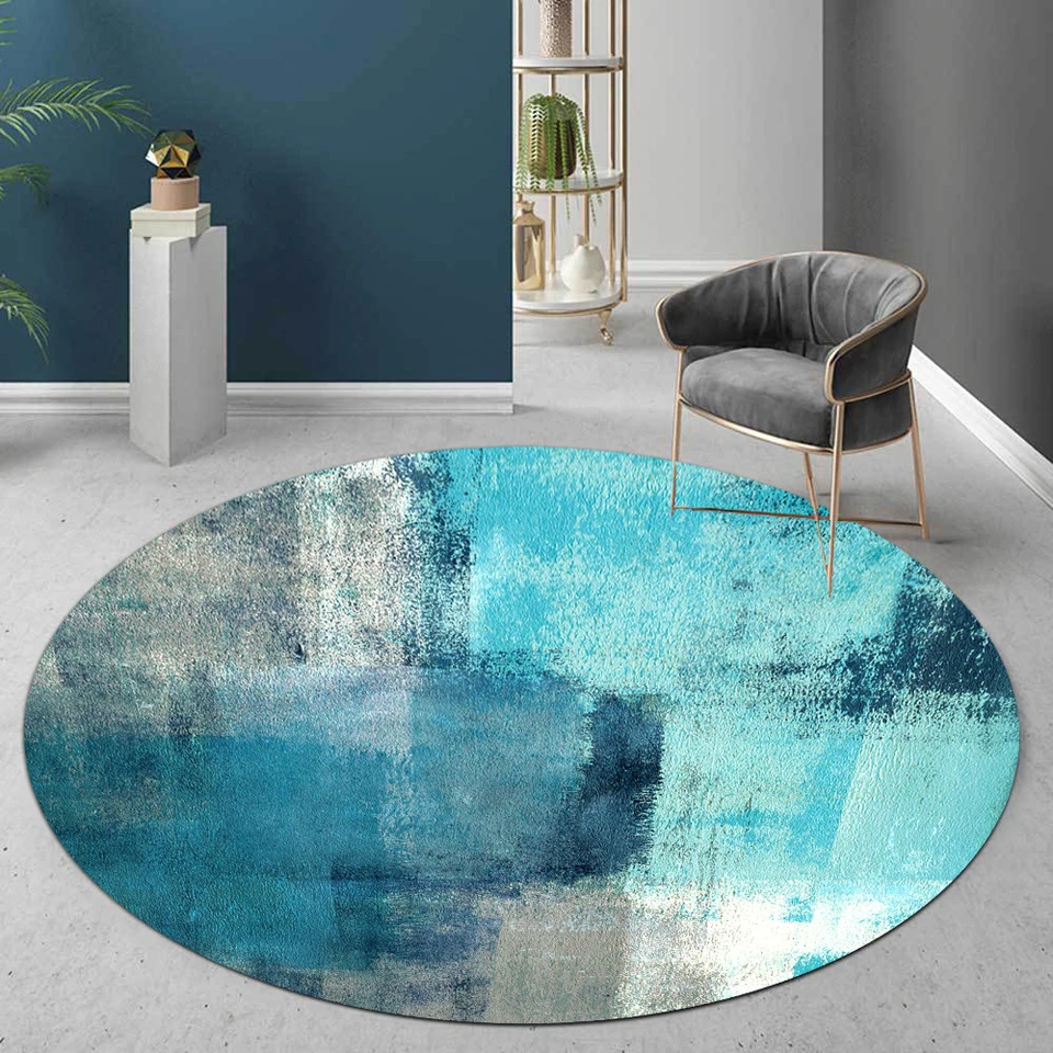 Скандинавские ковры для современной гостиной, модный синий абстрактный художественный акварельный круглый коврик для декора спальни, домашний противоскользящий коврик для стула