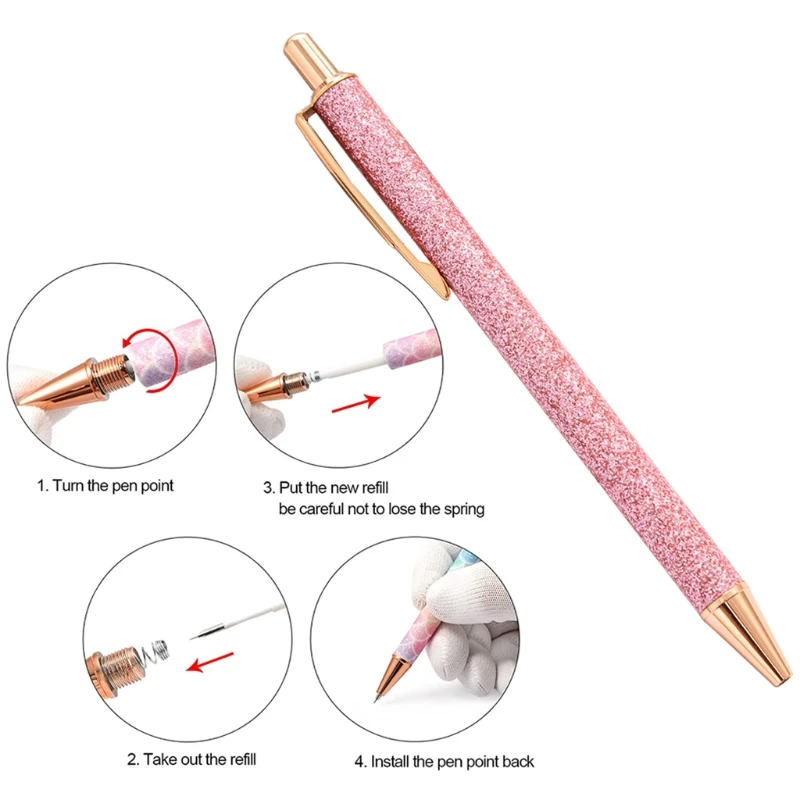 Шариковая ручка из розового золота, металлическая, с блестками, с ц...