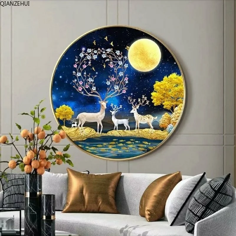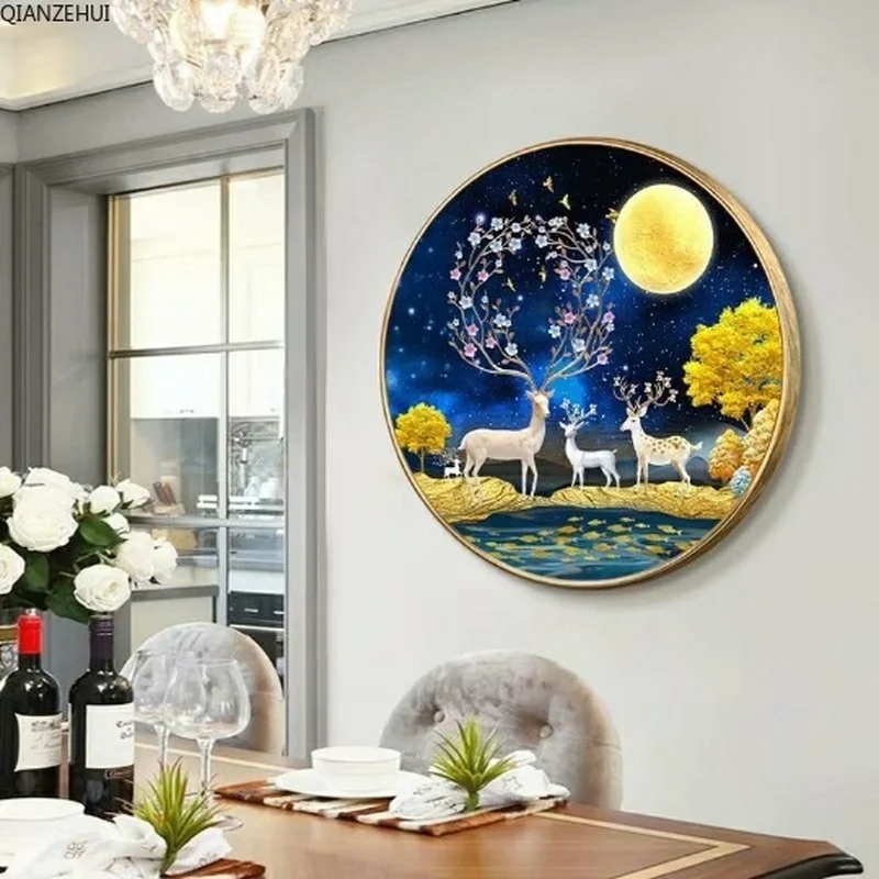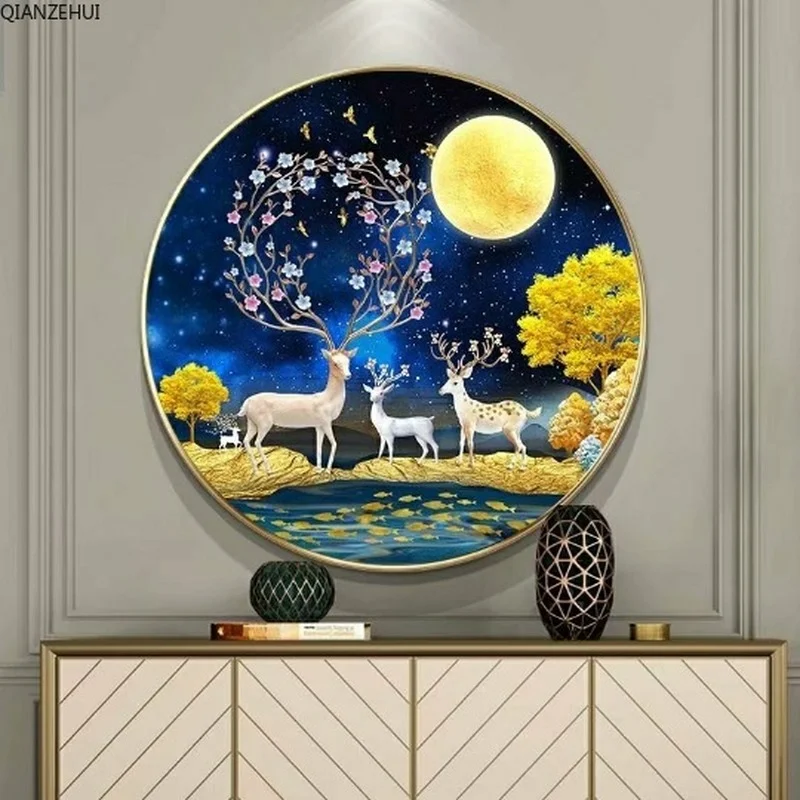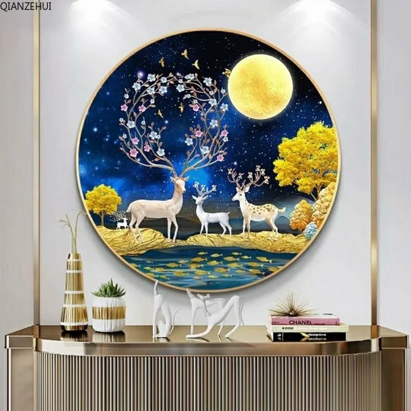 QIANZEHUI, алмазная 5D Вышивка своими руками, круглая Алмазная вышивка с оленем удачи 5D, алмазная живопись, вышивка крестиком