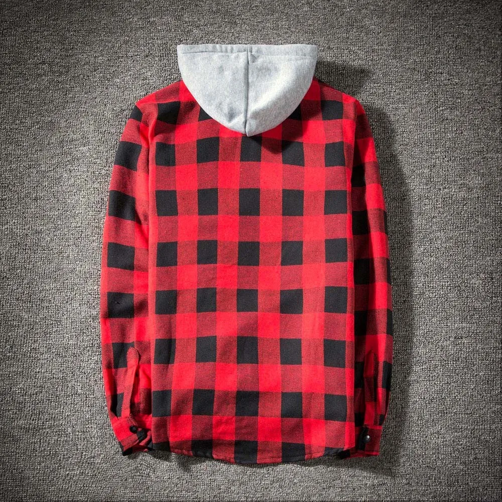 Хлопковая рубашка в клетку с капюшоном, Повседневная Уличная одежда, Классическая приталенная клетчатая рубашка с длинными рукавами для мужчин, универсальная Студенческая одежда Рубашки