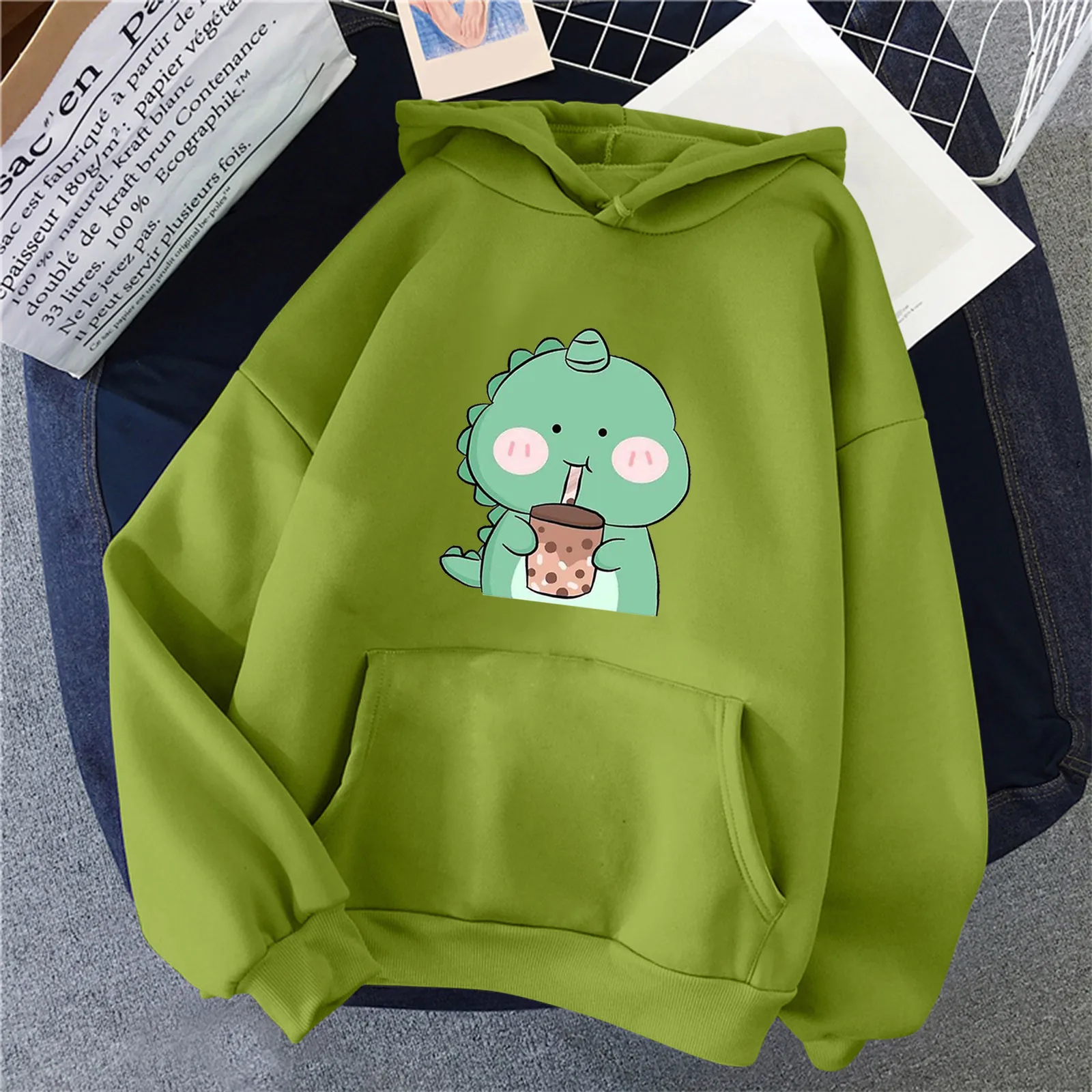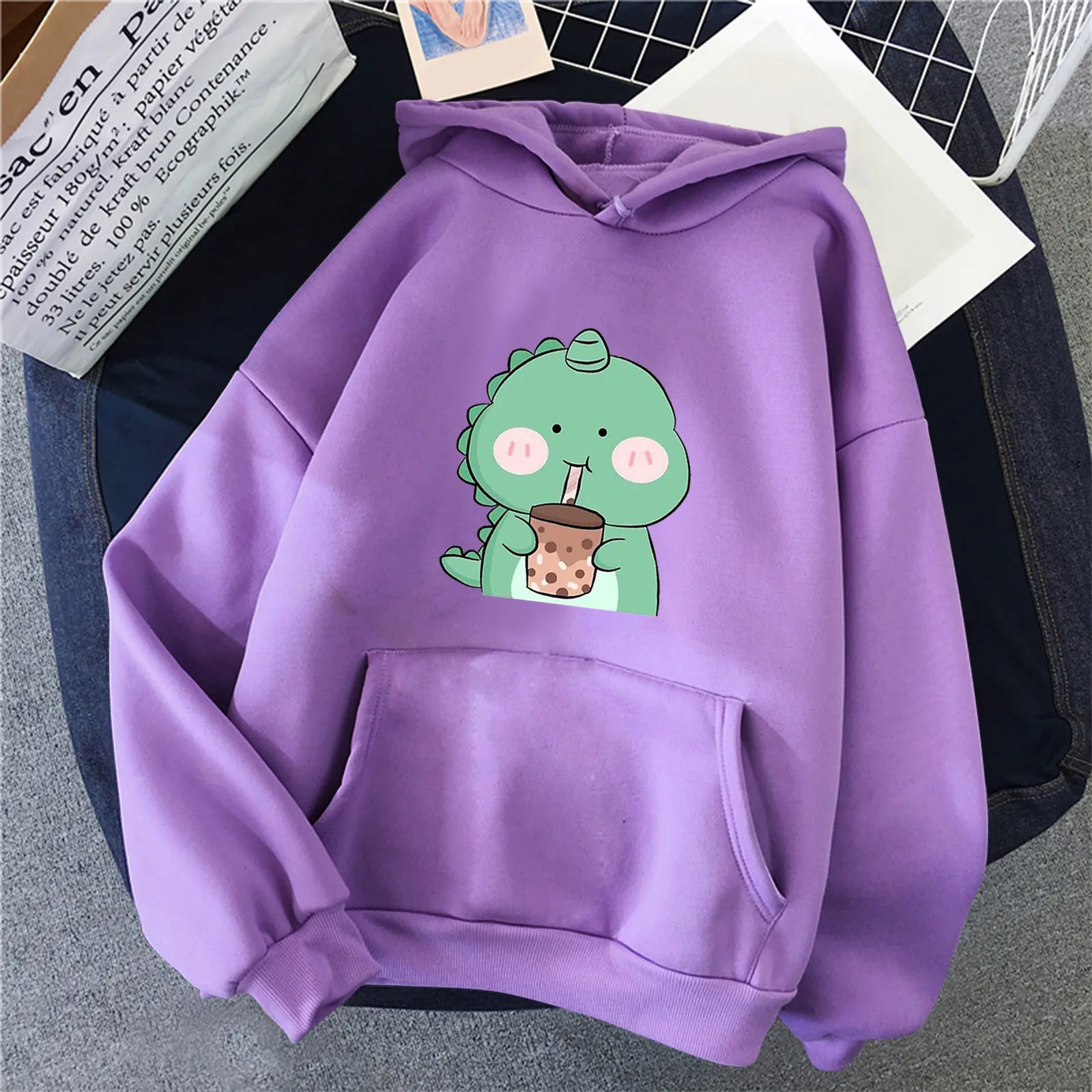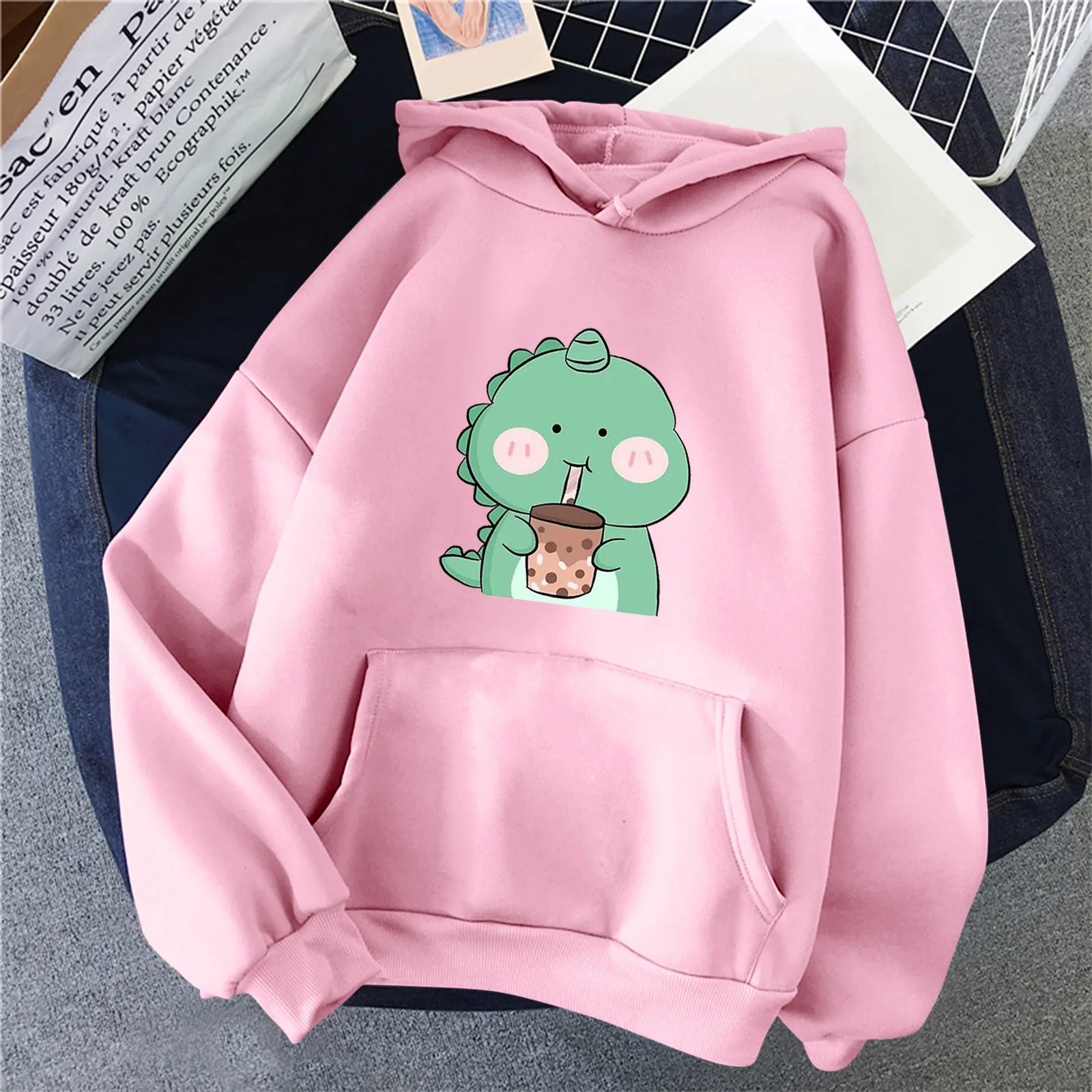 Женские свитшоты Харадзюку С Капюшоном, толстовки Kawaii, милая уличная одежда с принтом динозавра, пуловер оверсайз, Повседневная Толстовка большого размера