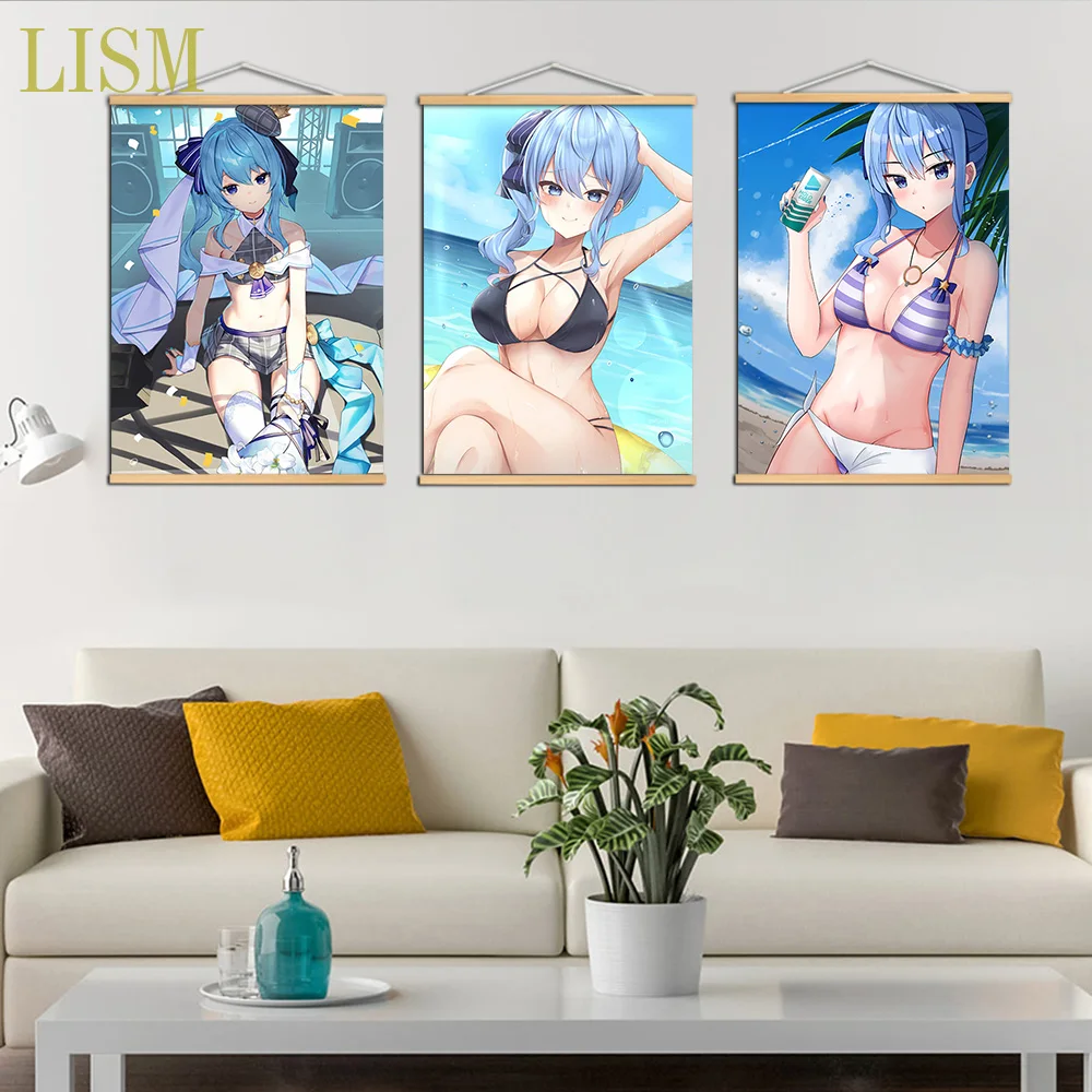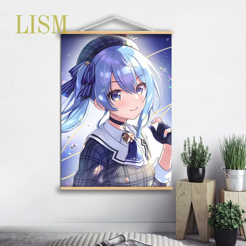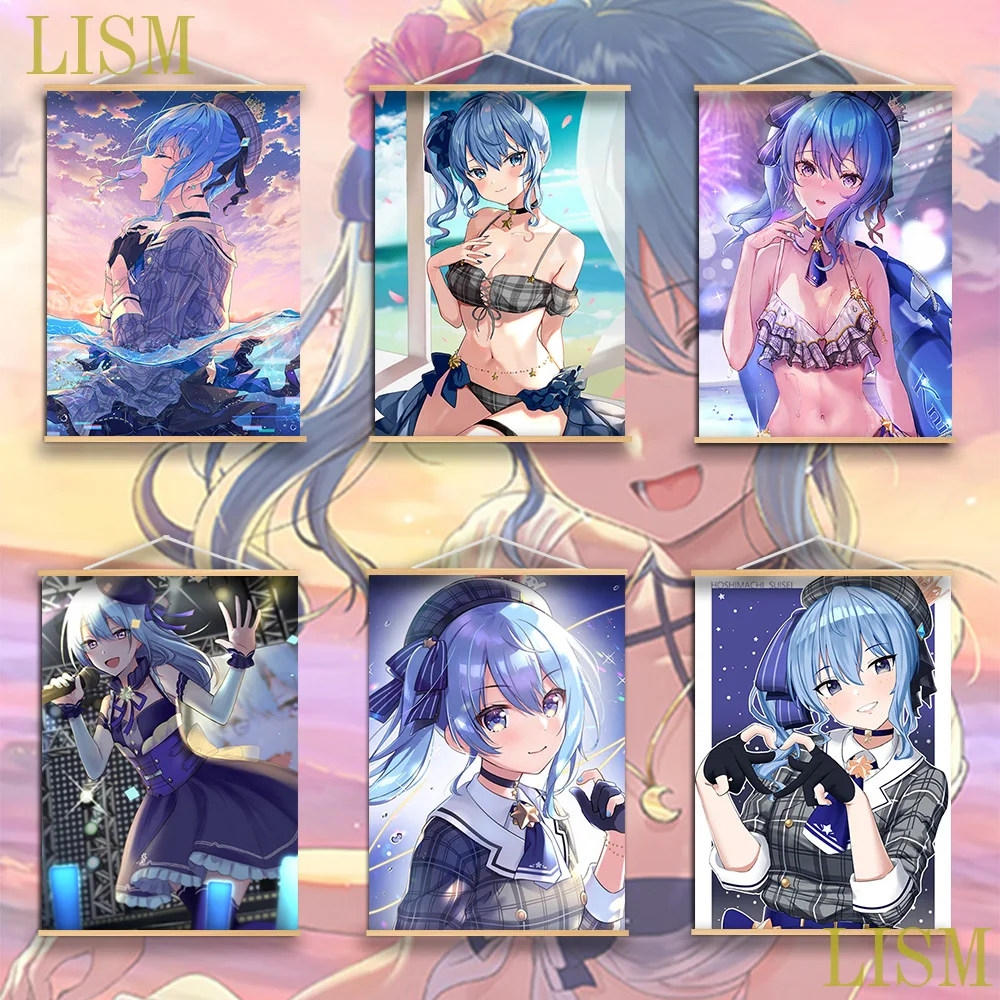 Милый аниме VTuber виртуальный ювелир Hoshimachi Suisei Аниме Манга настенный постер из массива дерева подвесной свиток с картиной на холсте