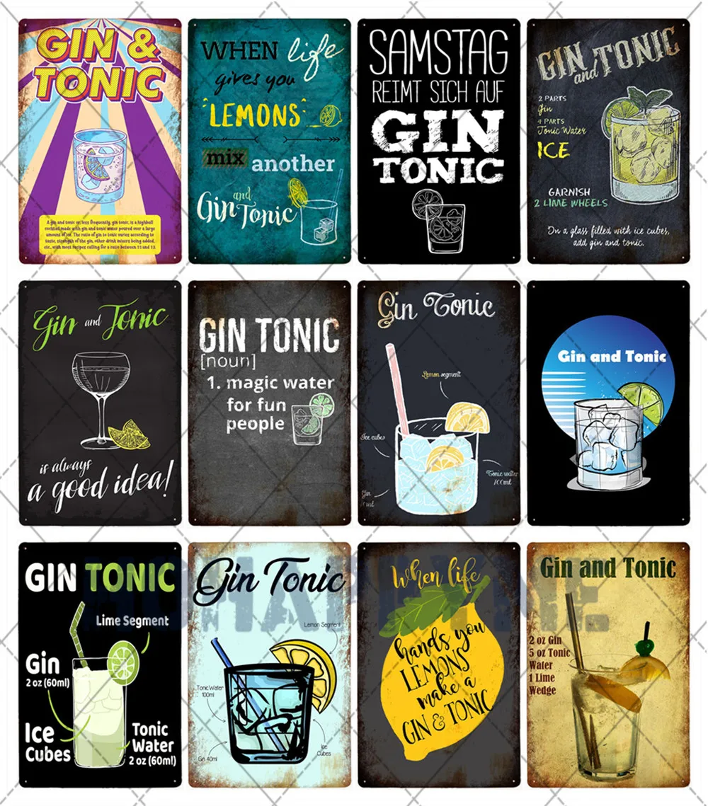 Коктейльные знаки, металлическая пластина, спиртовой Джин-тоник, оловянный постер с рисунком, декоративная настенная тарелка для бара, паба, кафе, винтажный Декор для дома 20x30 см