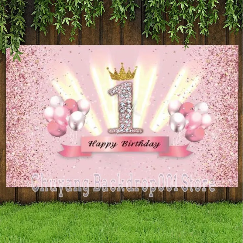 Розовый сладкий первый фон розовое золото принцесса девочки вечеринка в честь Дня Рождения Воздушный шар пользовательский фон для фотосъемки баннер для фотостудии