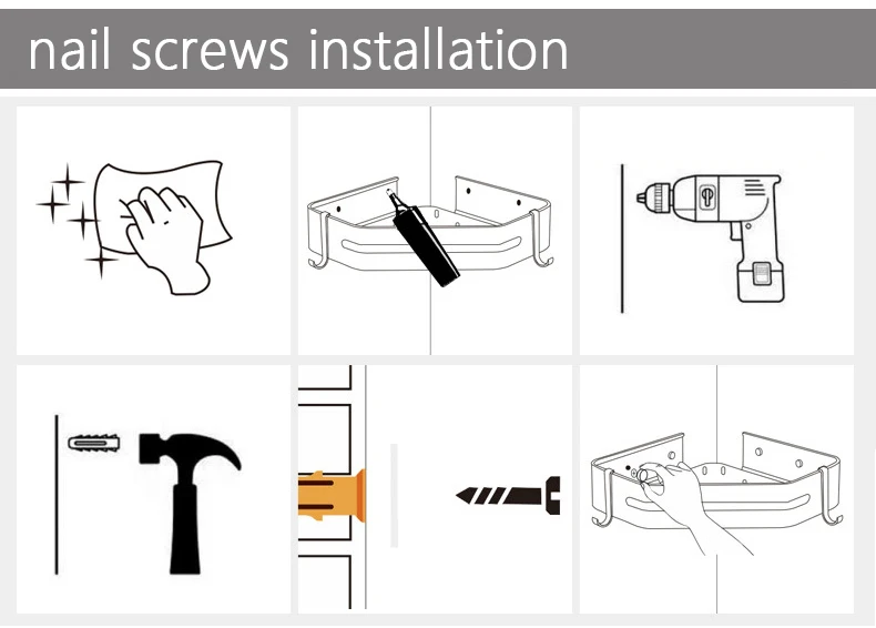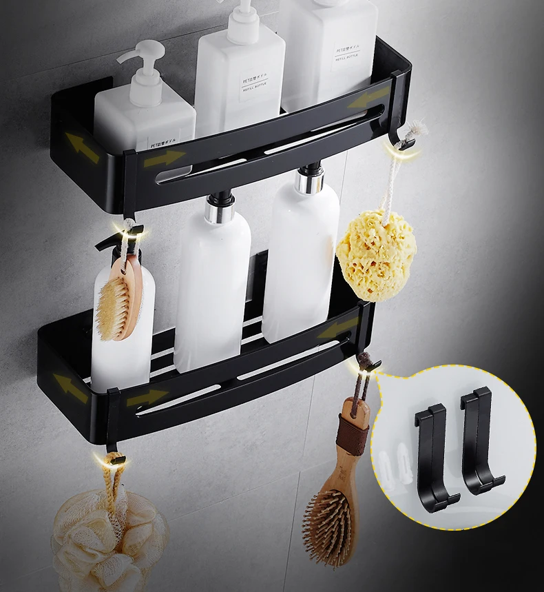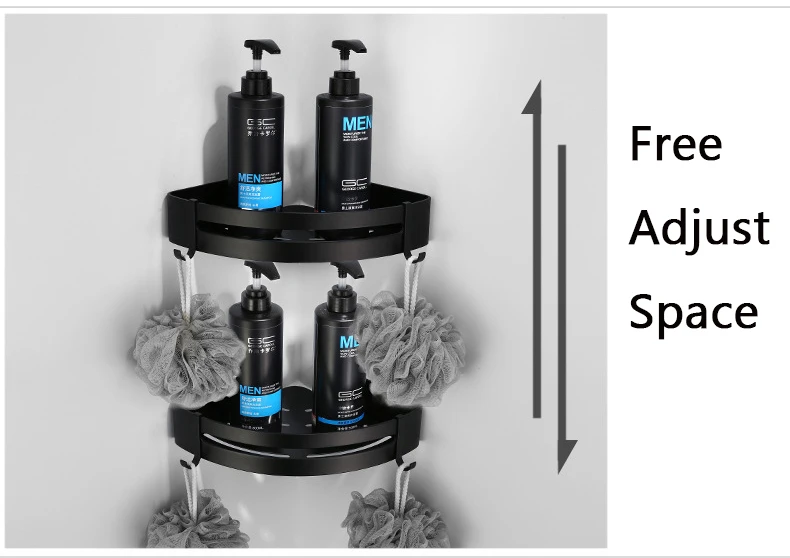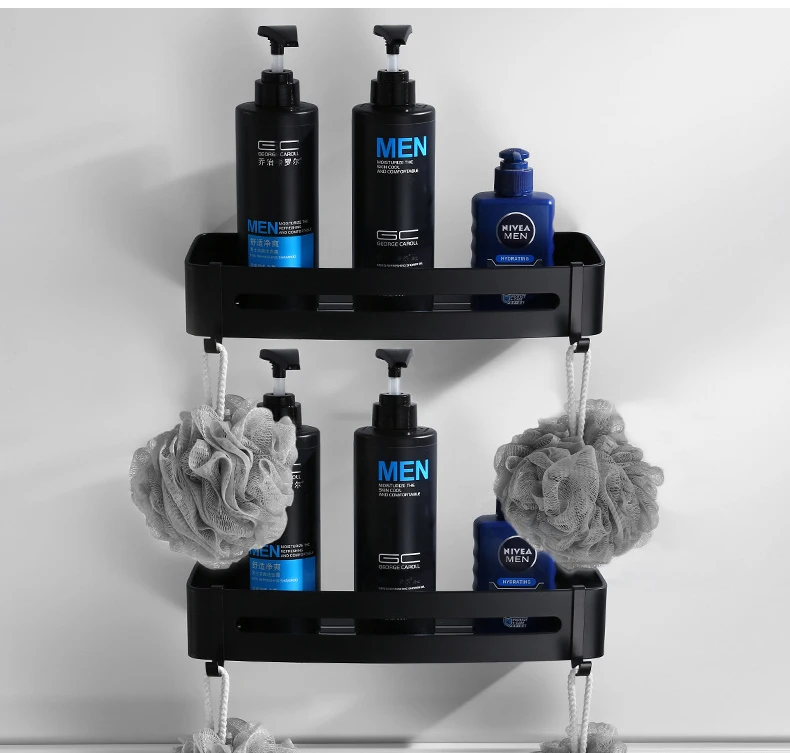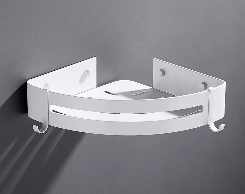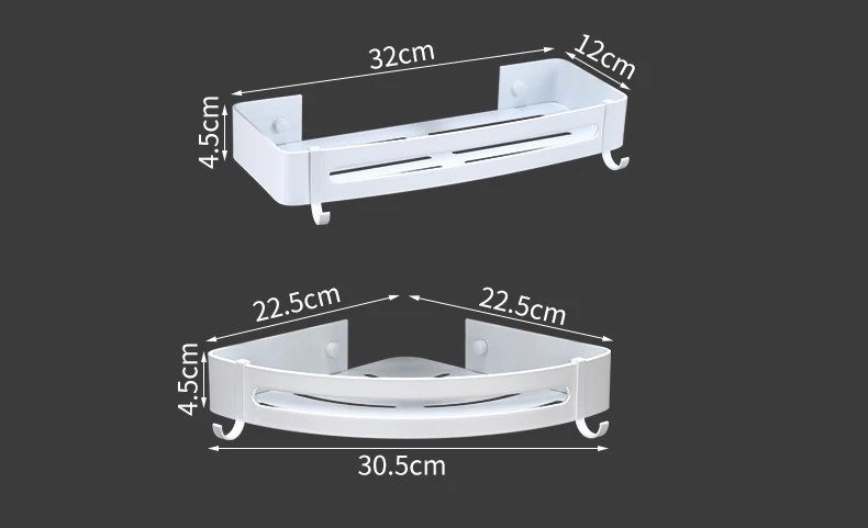 Угловая полка для ванной комнаты, алюминиевая полка для ванной комнаты, душа, кухни, настенное крепление, черныйбелый цвет