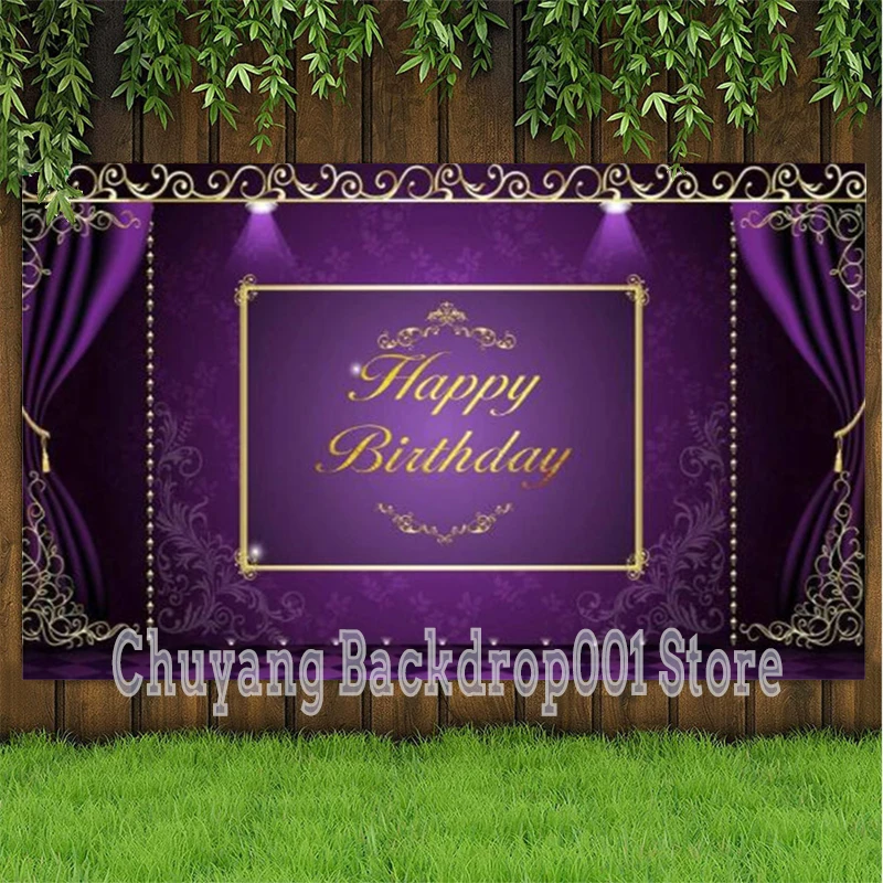 Фиолетовый Блестящий сценический фон с днем 30th 40th 50th 60th День Рождения фотография фон для праздника вечевечерние баннер Фотостудия