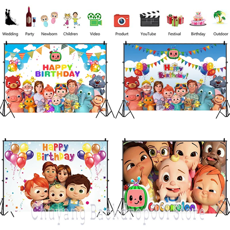 Фон для фотосъемки с изображением семьи Cocomelon для детского дня рождения