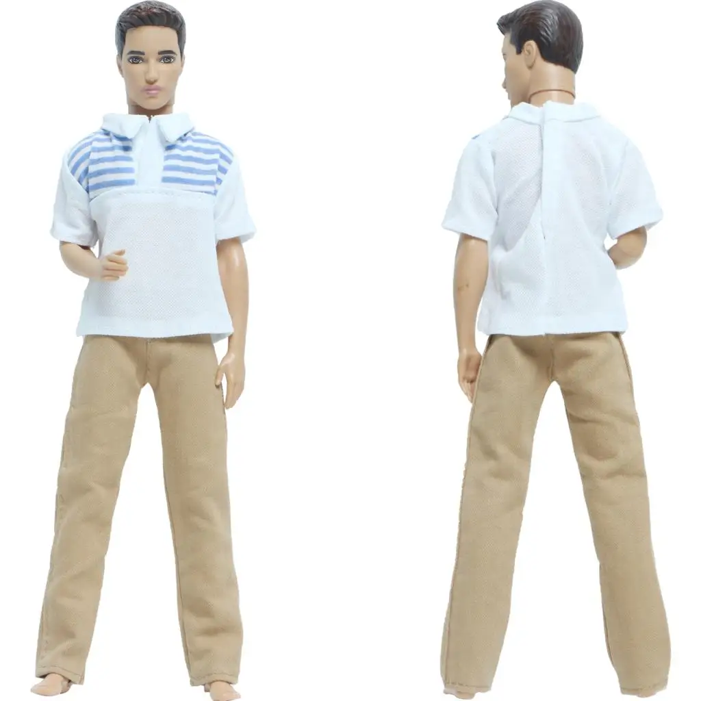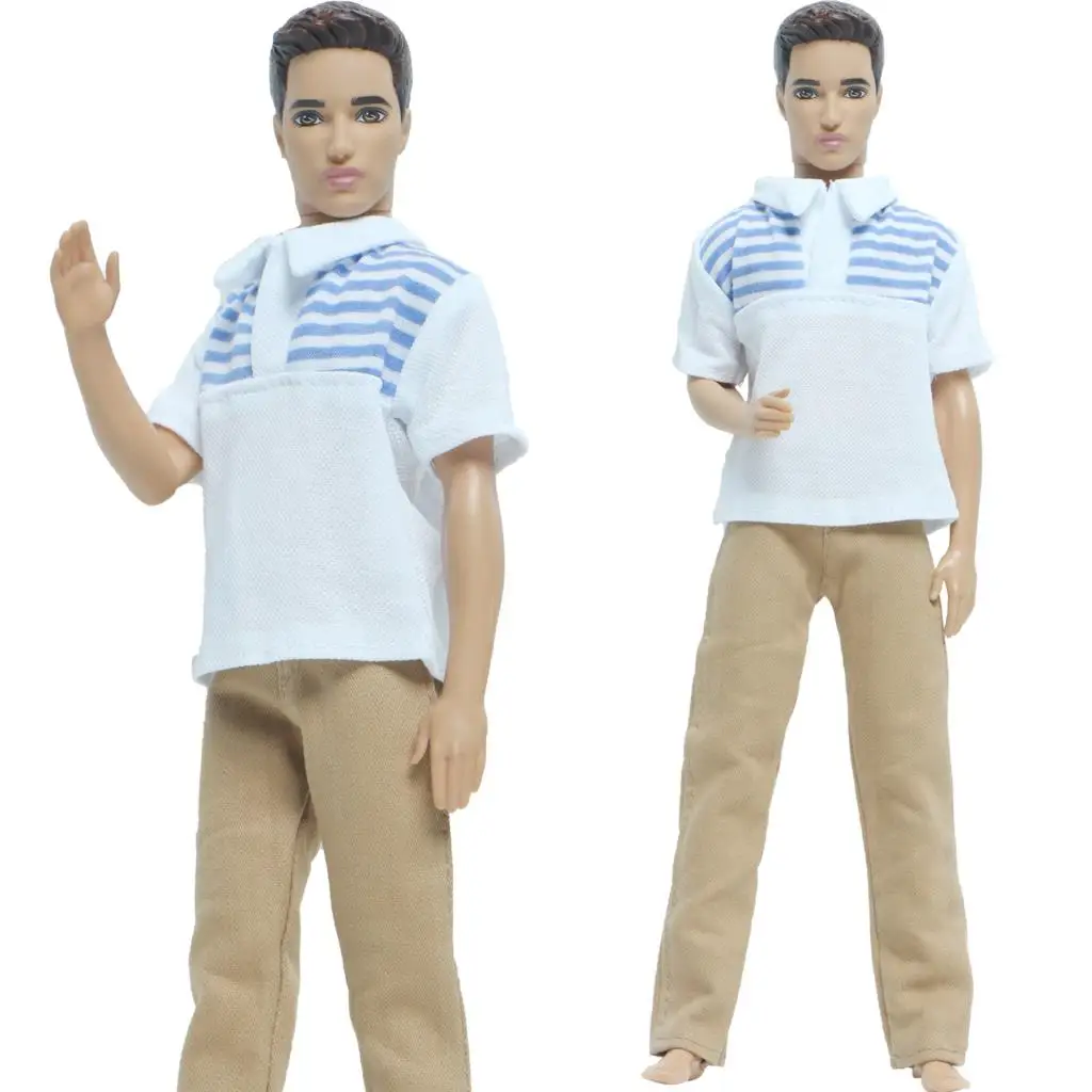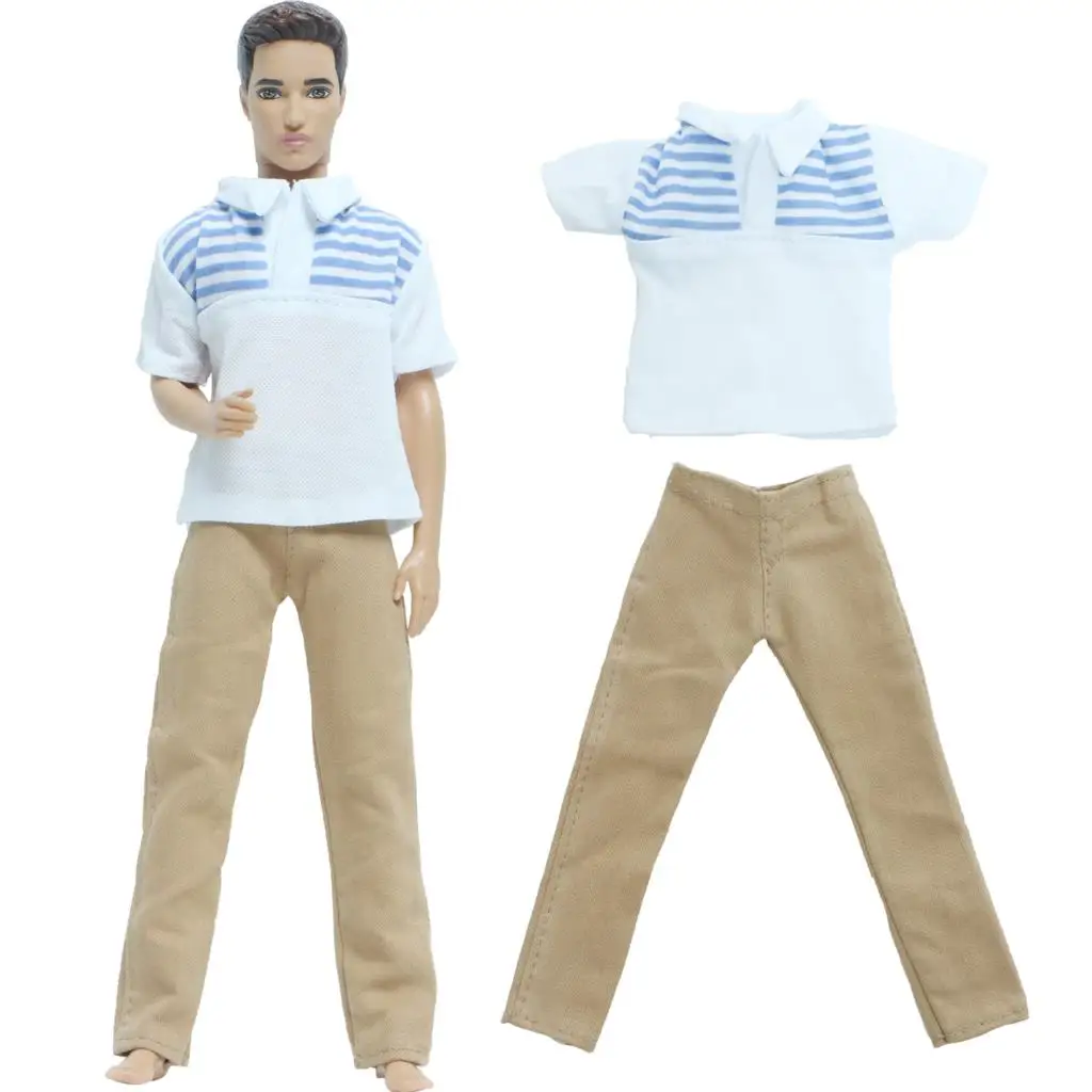 Одежда для куклы ручной работы BJDBUS, Мужская футболка в полоску, брюки цвета хаки, длинные брюки, Одежда для куклы Барби, аксессуары для куклы Кена