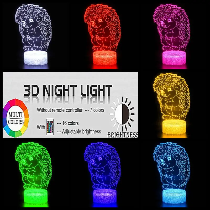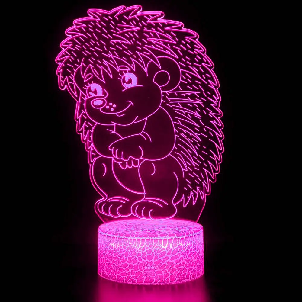 Голографический ночник в виде животного, 3D модель игрушки-Ежик, аксессуары для статуй, настольная лампа, рождественский подарок, украшение на день рождения