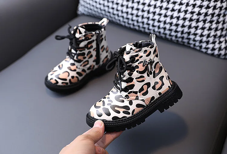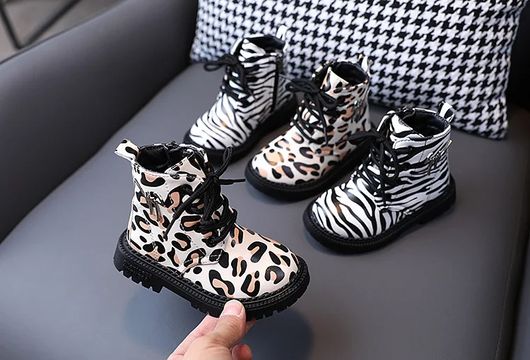 Детские повседневные ботинки для малышей, детская обувь, рандомная обувь с леопардовым принтом зебры, на шнуровке, Ботинки Martin для девочек, короткая обувь на платформе до щиколотки, детская обувь