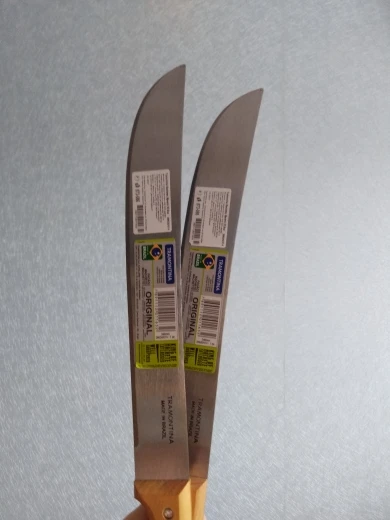 легкое, короткое, тонкое лезвие и от того неудобное. ручка неухватистая. от того что легкое, рубка силой руки и рука устаëт быстрее, чем с тяжелым. нет темляка и с неухватистой ручкой рубить опасно. Не экономьте, купите тяжелое и из хорошей, толстой стали. Это игрушка, покупка так себе. теперь понимаю разницу между этим и хорошим мачете.