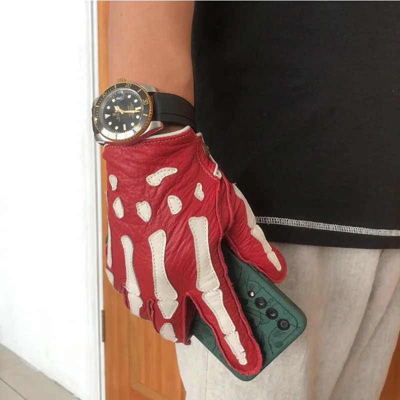 Перчатки мужские из овечьей кожи, теплые перчатки с пальцами для сенсорного экрана, из натуральной кожи, черные красные, Осень-зима
