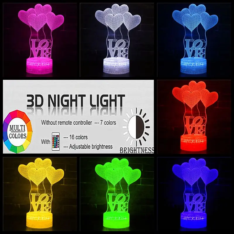 Подарок на День святого Валентина для любимой девушки красочная USB голограмма LOVE Heart лампочка Звезда 3D Ночник светильник льник для вечерние
