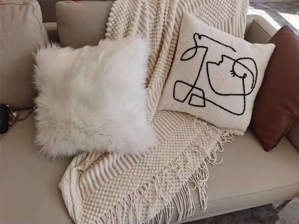 Одеяло в скандинавском стиле для дивана, простое однотонное искусст...