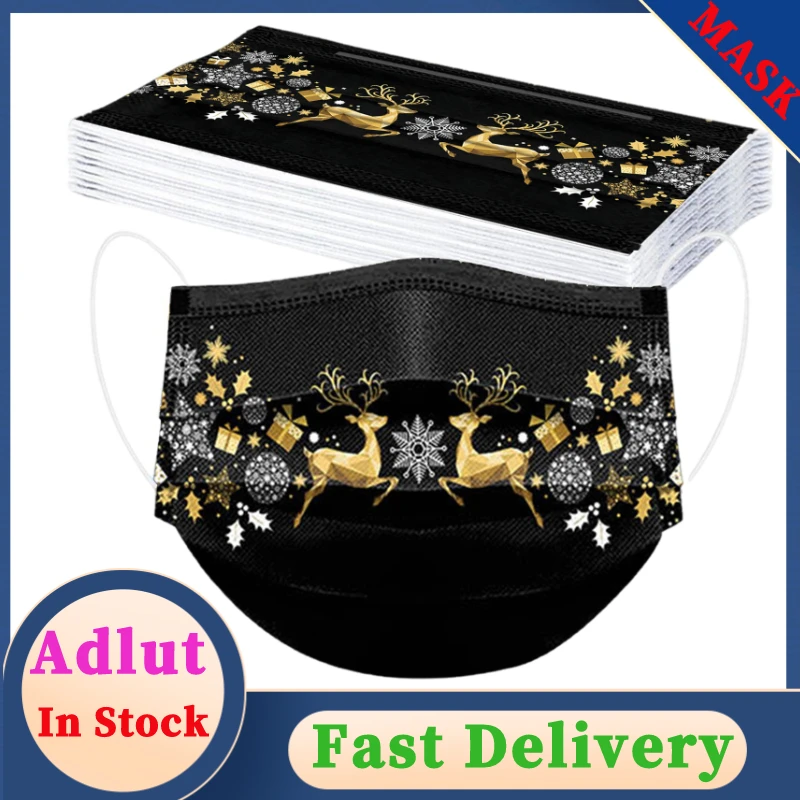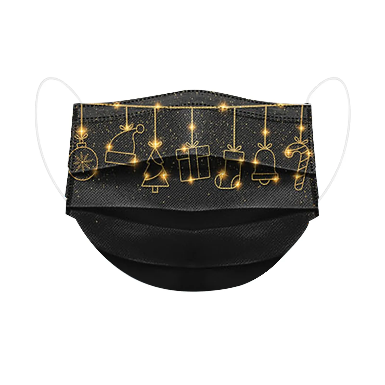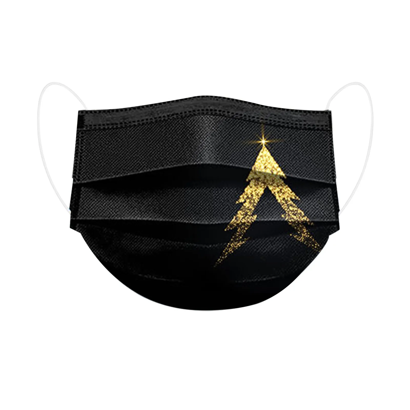 Рождественские маски для лица, одноразовые дыхательные аппараты для взрослых; Рот нос защита, рождественские мотив, 3-Слои из дышащего материала, BlackGold серии