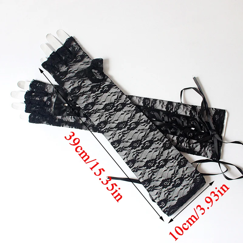 Женские сексуальные перчатки на шнуровке, черные длинные перчатки без пальцев, длина до локтя, в стиле панк, теплые перчатки для костюмированной вечеринки, перчатки Goth Lolita
