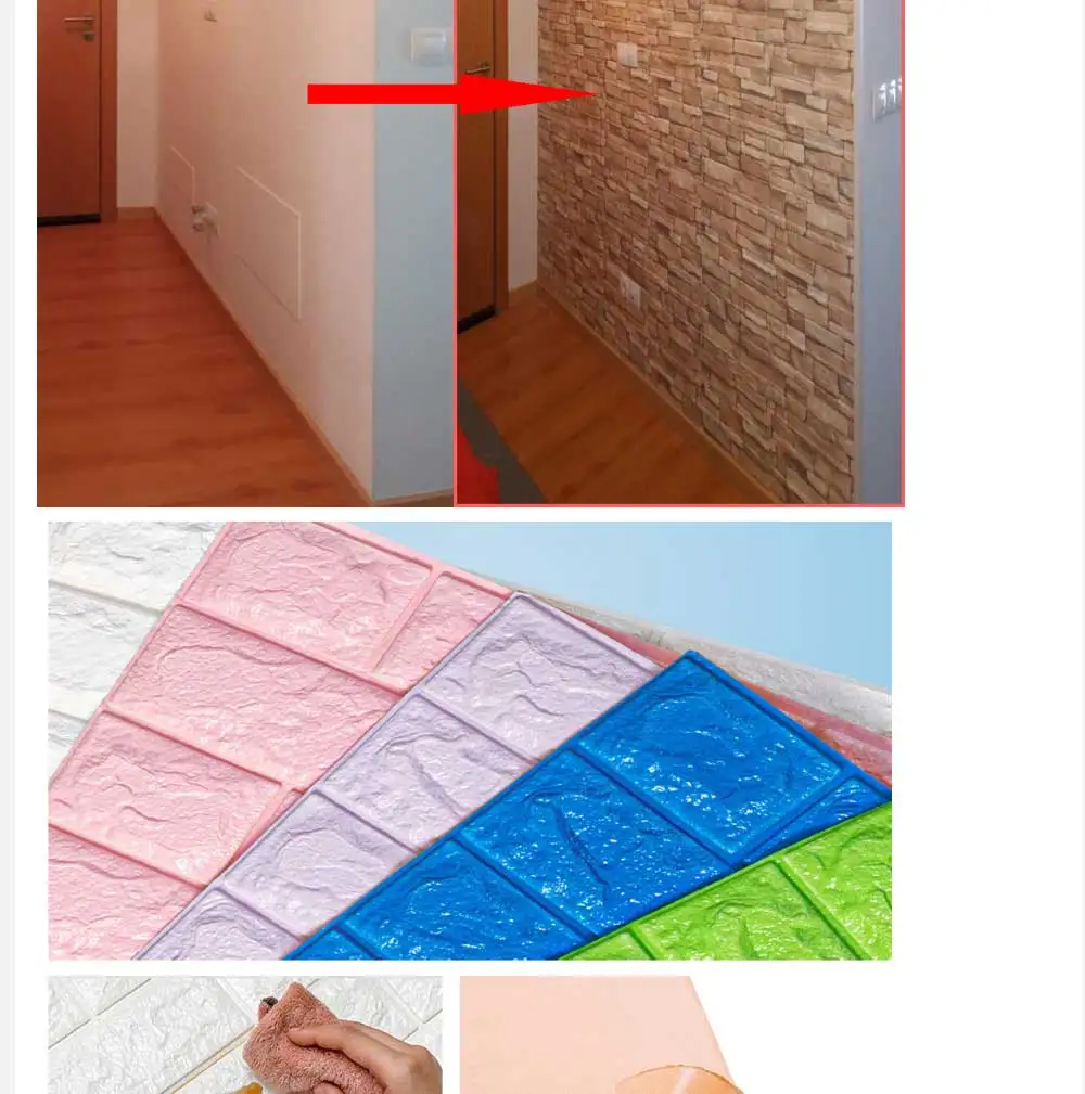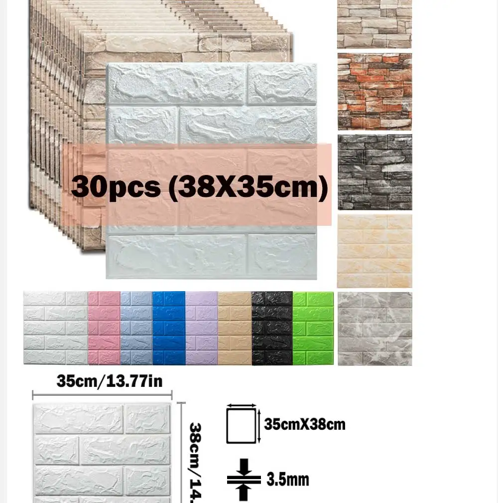 Особенности:** Самоклеющиеся и съемные: Снимите клейкую подложку и приклейте к любой сухой плоской поверхности. Никакого дополнительного клея или инструмента не требуется.** Легкое удаление: легко удаляется без повреждения поверхности, без остатков.** Мягкие поролоновые обои: это анти-столкновение, Мягкая Пена уменьшает шум, безопасность и защиту окружающей среды** Материал хорошего качества: изготовлен из высококачественной пены XPE, нетоксичный, без запаха, мягкий и гибкий.** 3D кирпичные обои: текстурированные 3D кирпичные обои являются хорошим украшением для вашей стены.** Легко чистить: можно чистить и обслуживать влажной тканью, это удобно для ежедневного использования.** DIY: легко резать и обрезать в соответствии с вашими различными потребностями установки.** Применимые поверхности: подходят для гладкой, чистой, жаркой и плоских поверхностей, таких как пластик, стекло, дерево и многое другое.** Многофункциональность: кирпичные обои можно безопасно установить в любую комнату, например, в гостиную, спальню, детские комнаты, кухонные стены, офис и т. д., чтобы создать индивидуальный внешний вид.** Простота установки:1. Измерьте стену, чтобы получить подробные размеры перед резкой.2. Сначала очистите пыль.3. Обрежьте подходящий размер в соответствии с декоративной областью.4. Очистите заднюю бумажную наклейку, затем Наклейте на плоскую поверхность.5. Нажмите на панель, чтобы убедиться, что она правильно прилипает к стене.
