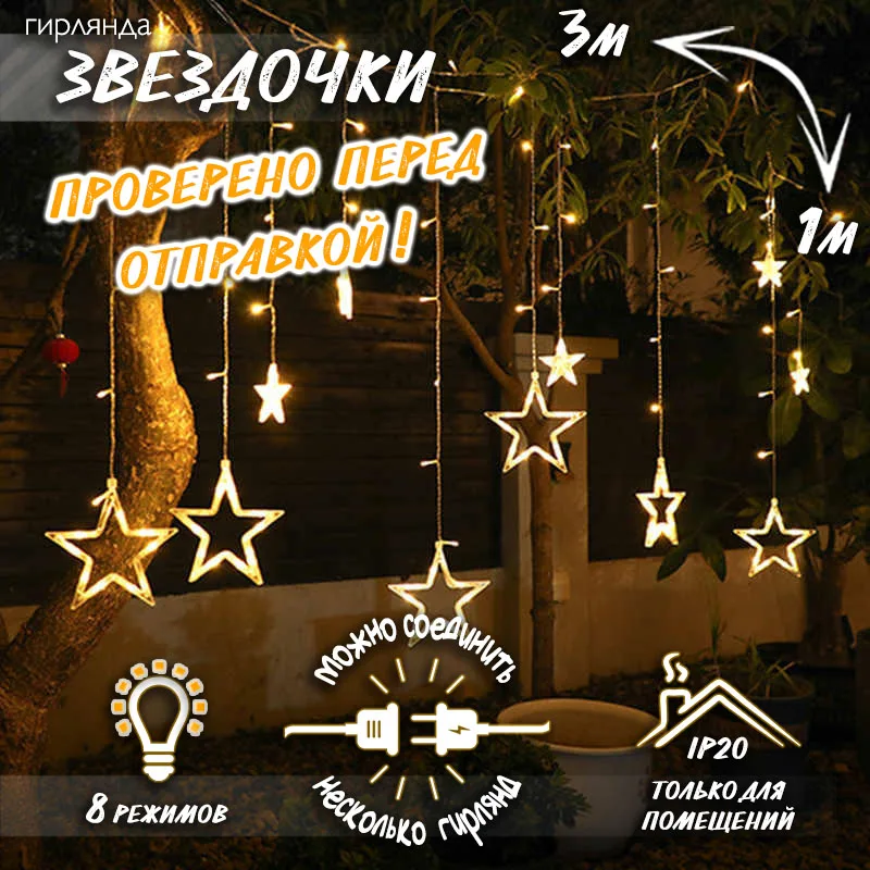 ✔ Качественные материалы✔ Усиленная изоляция✔ Управление контроллером - 8 режимов✔ Низкое потребление энергии✔ Коннектор для соединения нескольких гирлянд