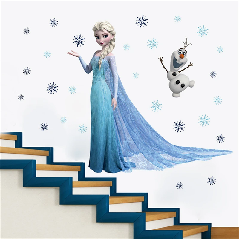 Принцесса Эльза дуб Настенный декор наклейка для детской комнаты девочки спальни винил дети высота графика наклейка самоклеящиеся обои для детской