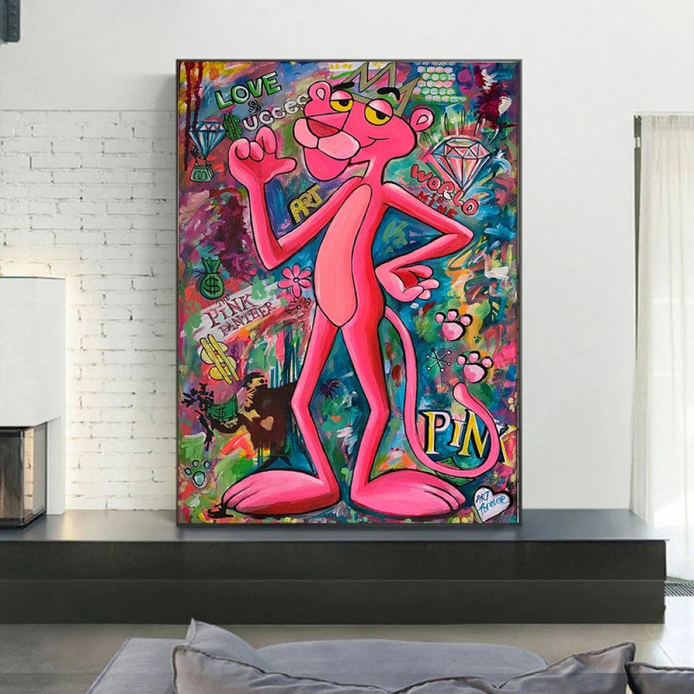 Бэнкси Граффити Поп-Арт холст картина розовая пантера плакаты и принты стены розовая фотография для гостиной домашний декор