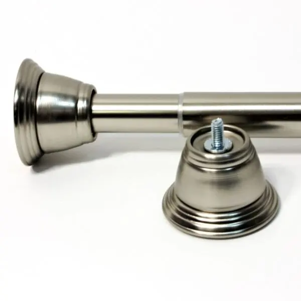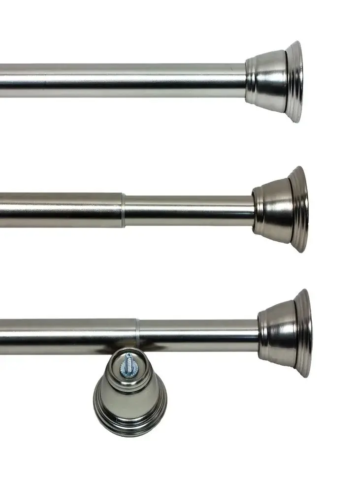 Карниз для ванной silver frosted BATH PLUS 122Х218 изысканный дизайн DECOR COLLECTION D25мм трубы, размер от 122 до 218 мм, крепление в распор, пружинный механизм, декоративные наконечники, устойчив к коррозии; позволяет подобрать в комплект кольца