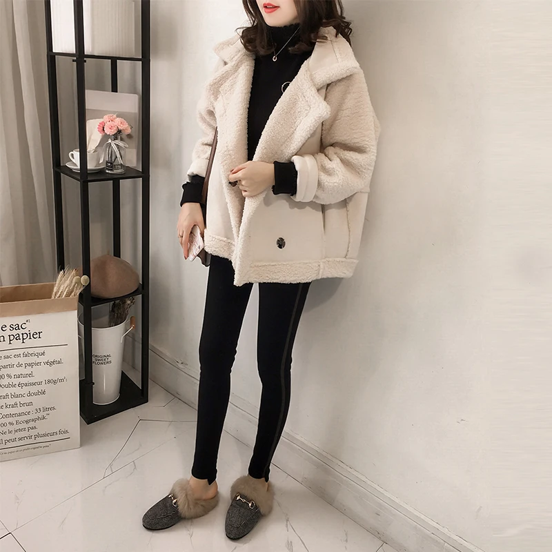 Женское пальто из овечьей шерсти, новая Корейская Свободная куртка ...