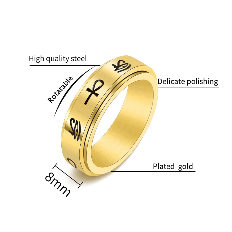 Вращающиеся кольца-Спиннер AsJerlya из нержавеющей стали, кольца с египетским глазом хора Анкх, кольца для беспокойства, свободно вращающиеся антистрессовые кольца