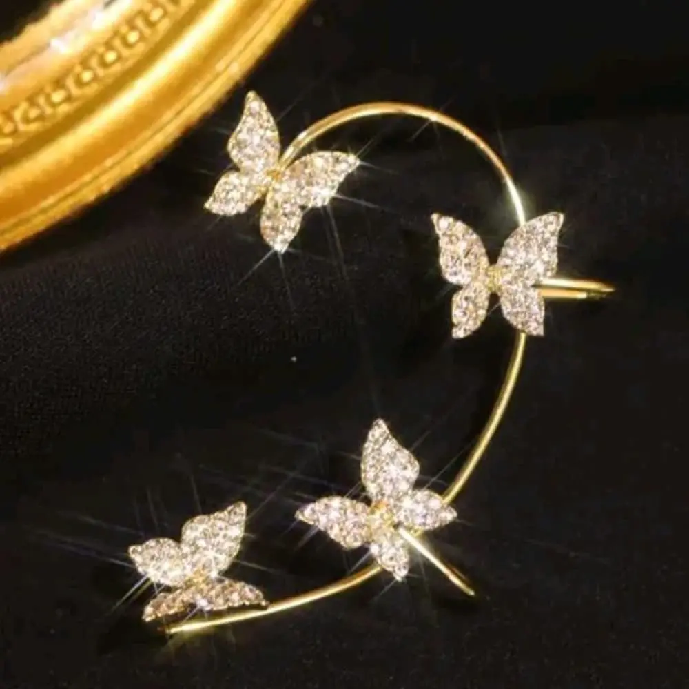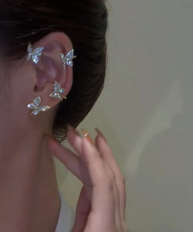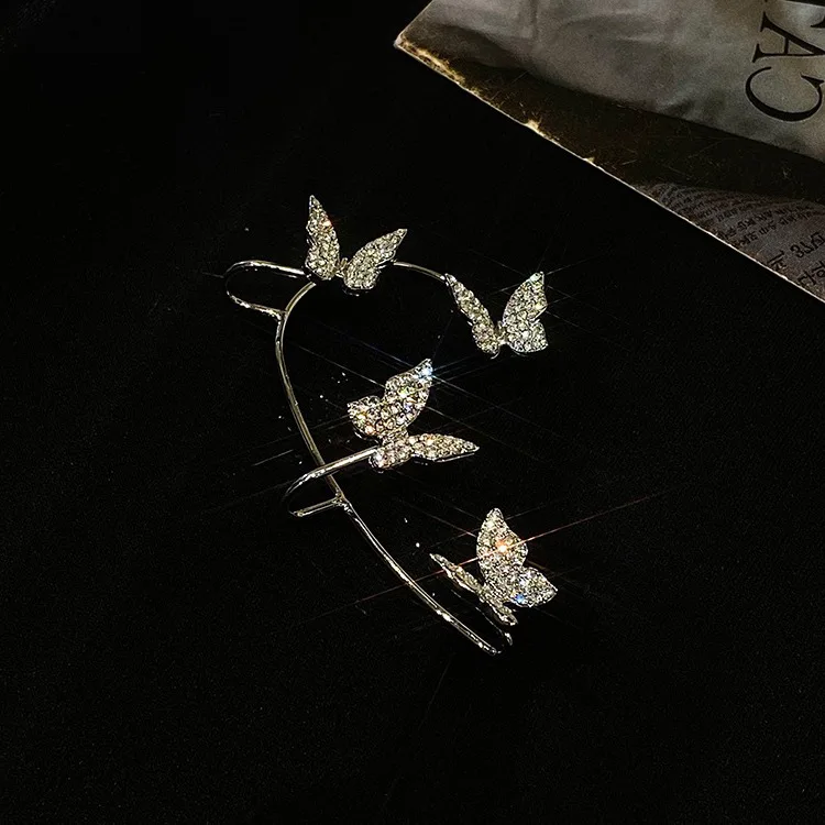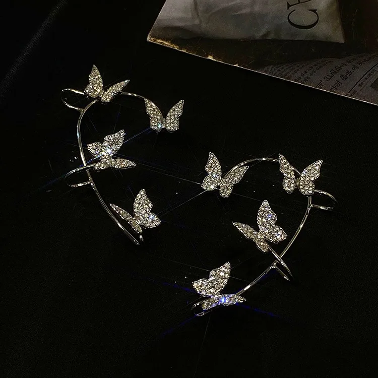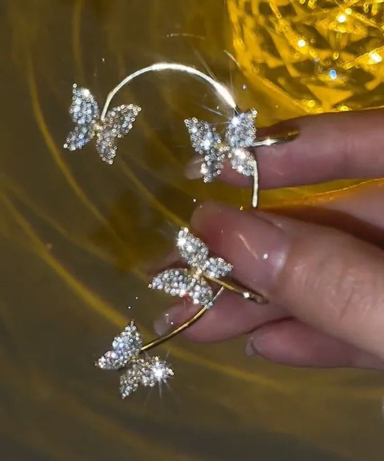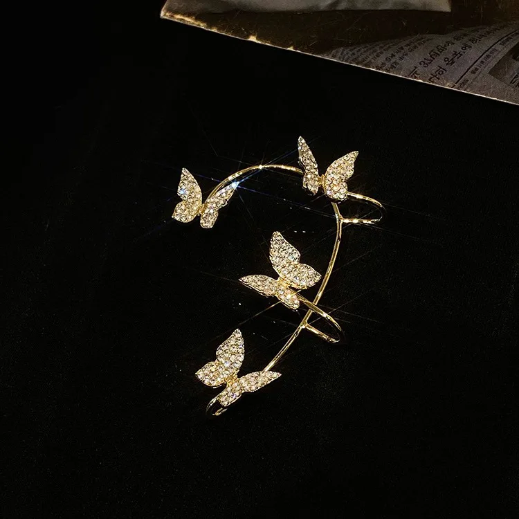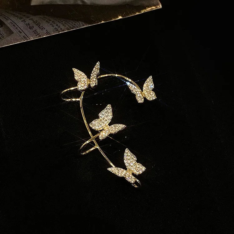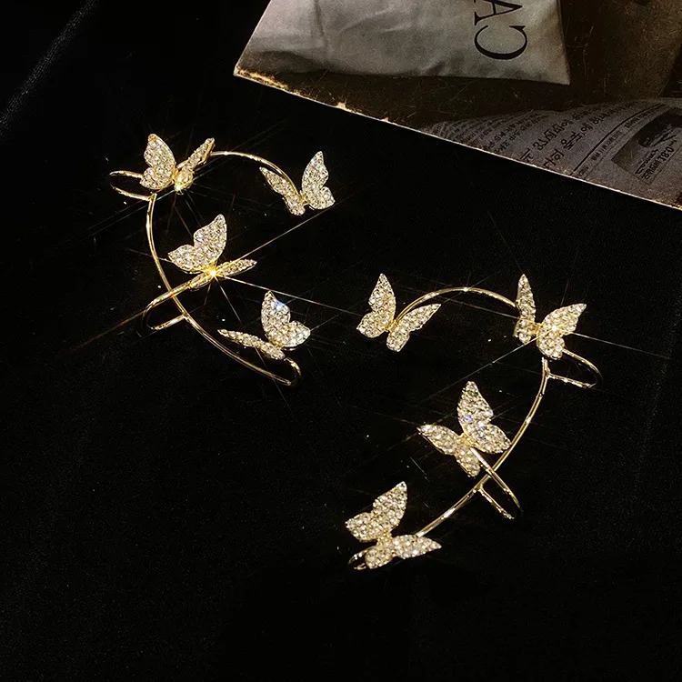 Позолоченные металлические клипсы для ушей для женщин, милые изысканные сверкающие циркониевые Клипсы-бабочки для ушей, серьги-клипсы, ювелирные изделия во французском стиле