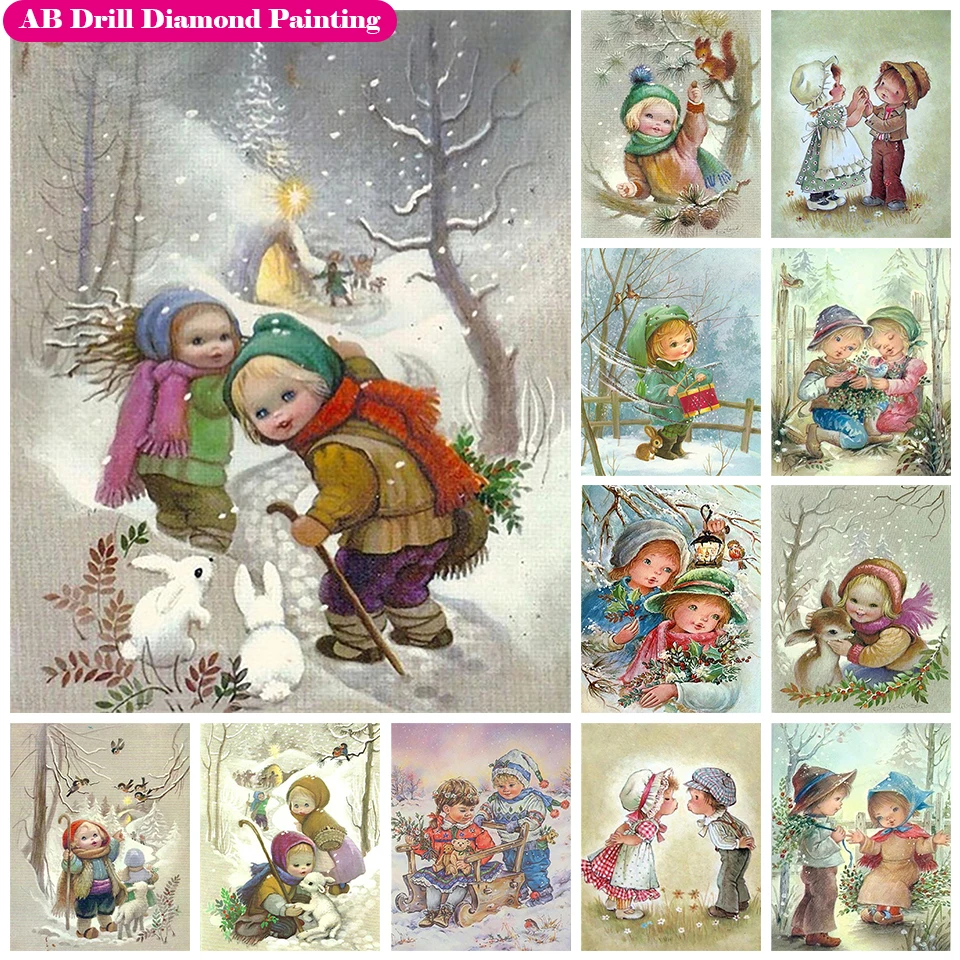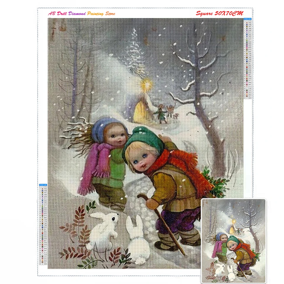 Набор для алмазной живописи сделай сам, картина 5D Снег AB с двумя маленькими рисунками, кролик, мозаика из страз, домашний декор, подарок