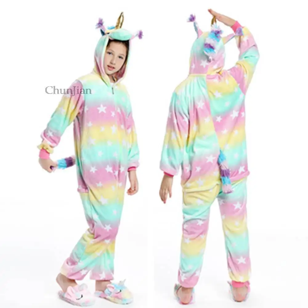 Пижама в виде единорога для девочек, кигуруми, детские комбинезоны ...