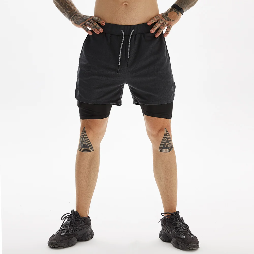 Шорты мужские 2 в 1, спортивные короткие штаны для бега, двухслойны...