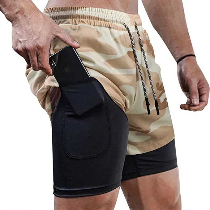 Мужские спортивные шорты 2 в 1, камуфляжные шорты для бега, для тре...