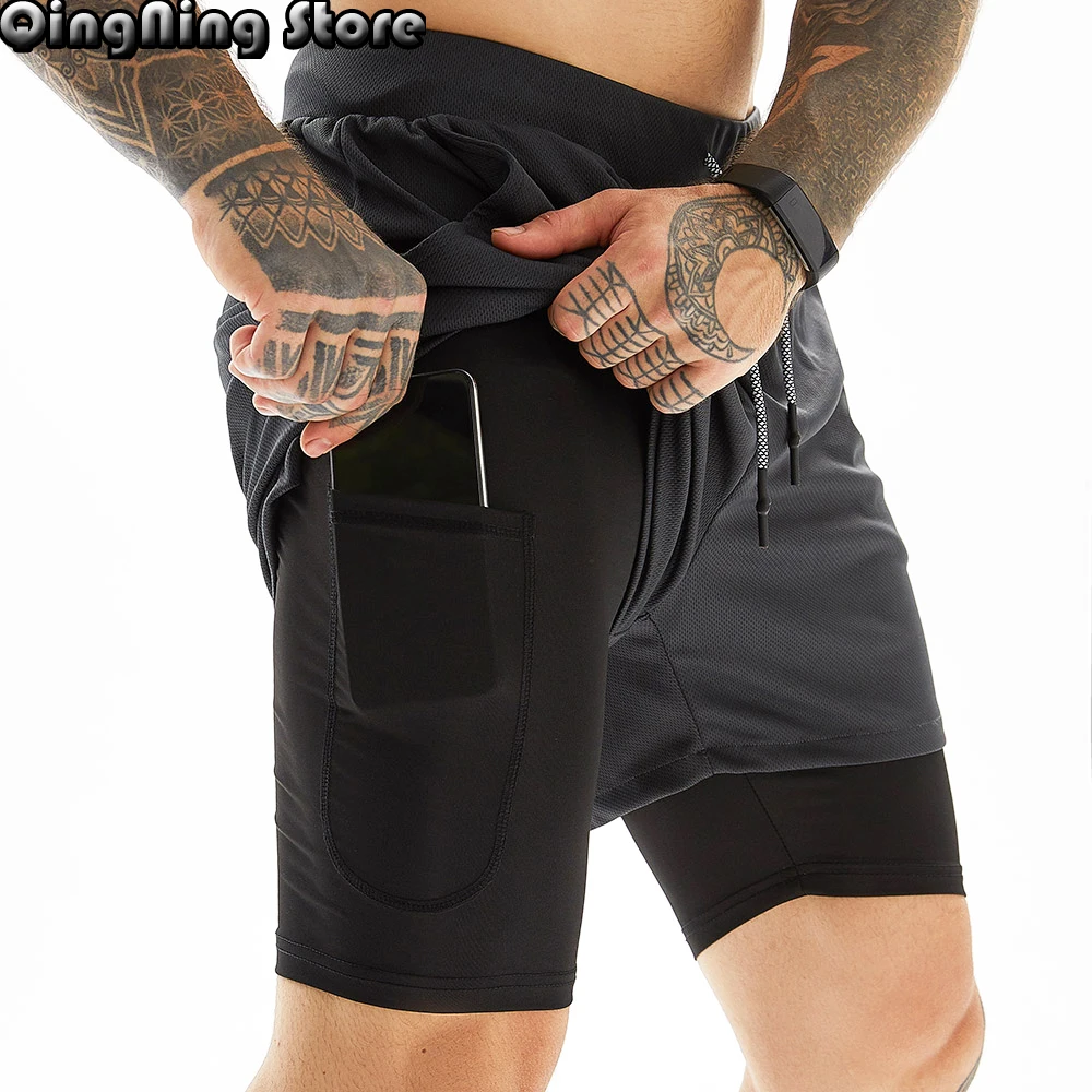Мужские шорты для бега, мужские спортивные шорты 2 в 1, мужские дву...
