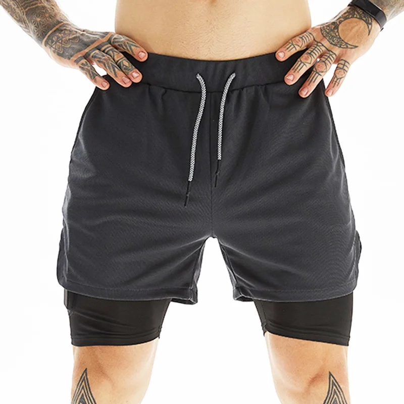 Новый Для мужчин, шорты для бега, Для мужчин s 2 в 1 Спортивные шор...