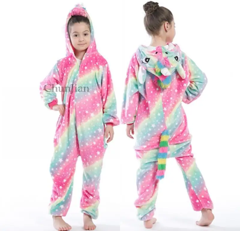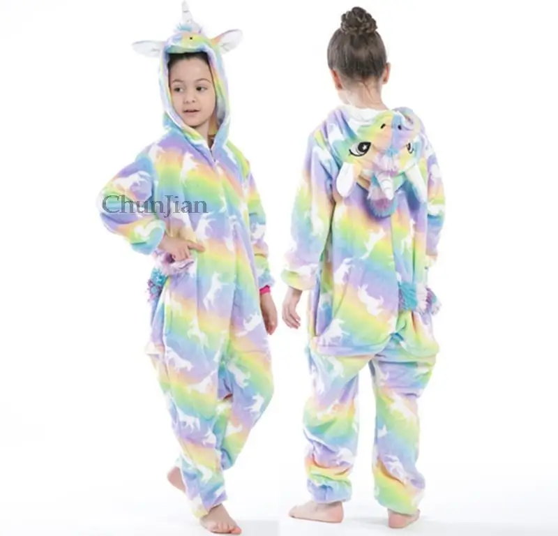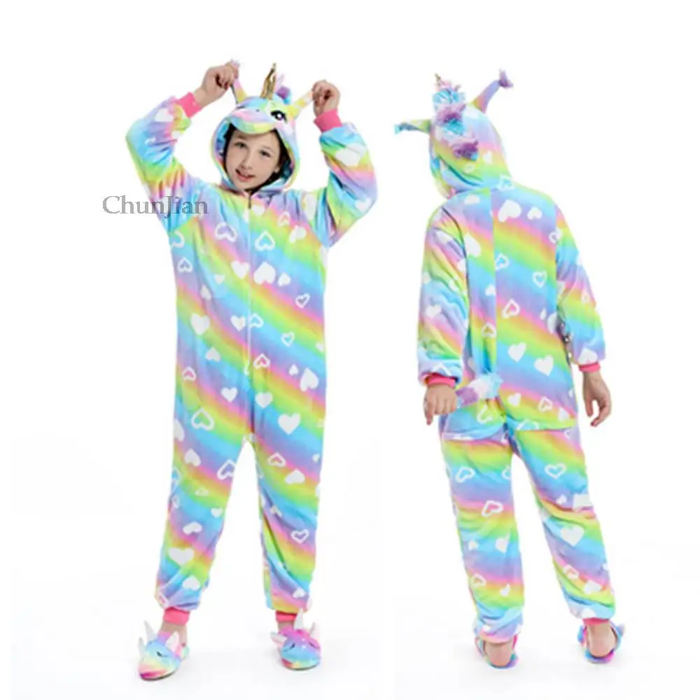 Пижама в виде единорога для девочек, кигуруми, детские комбинезоны ...