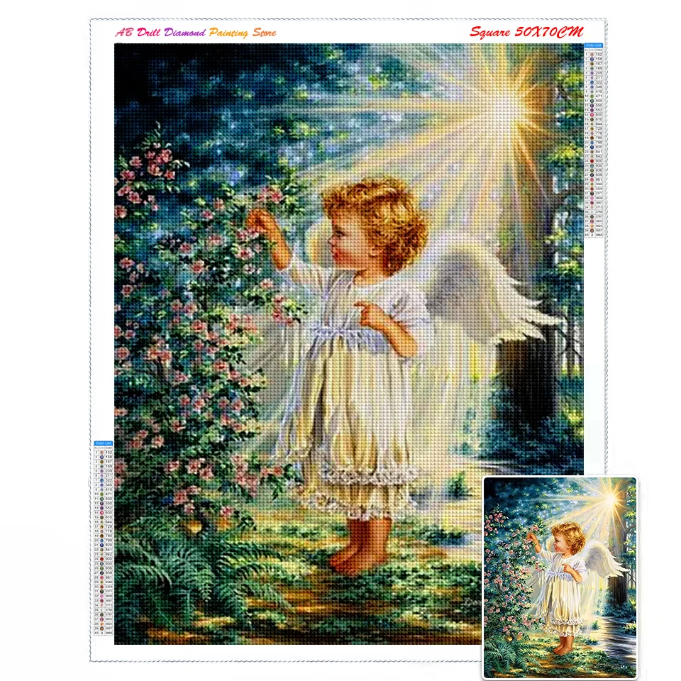 Алмазная живопись 5D с изображением ангела Девушки AB, животные, во...