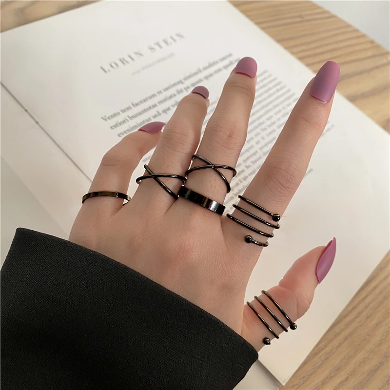 Комплект колец в стиле хип-хоп для женщин и девушек, тонкие кольца ...
