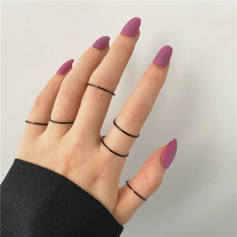 Кольца на палец 17KM в стиле панк, минималистичные Гладкие Черные Г...