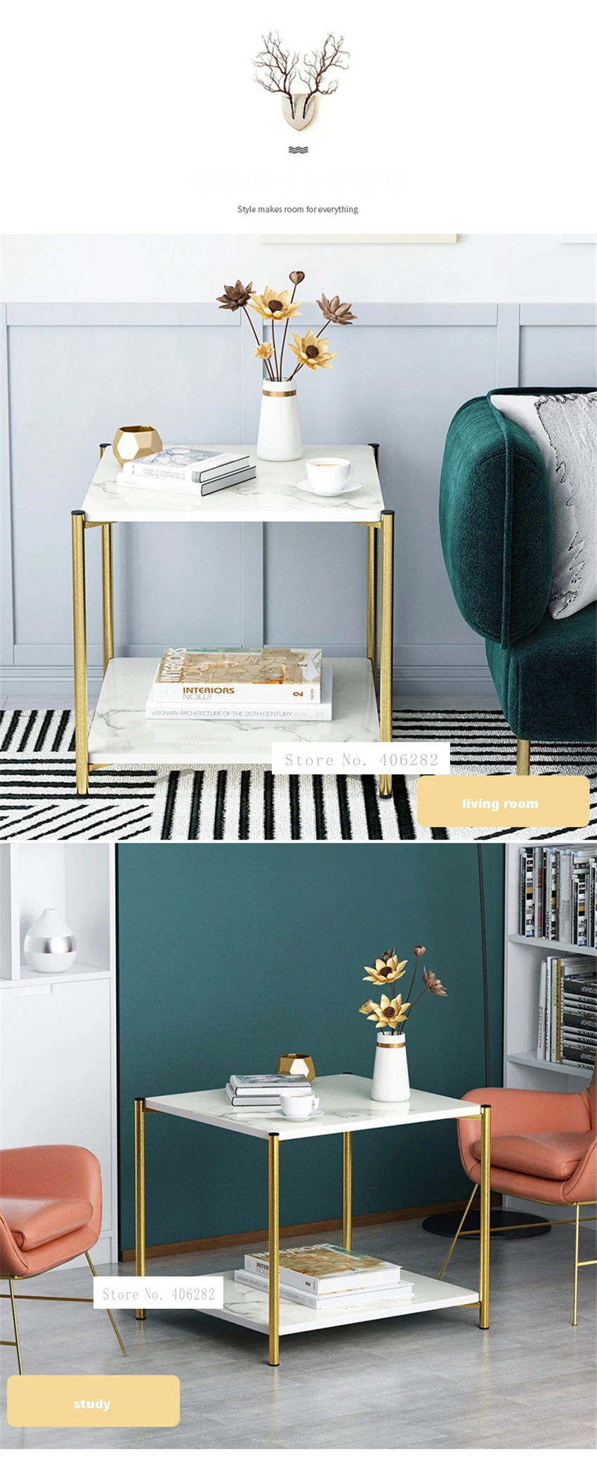 Металлический прикроватный журнальный столик, скандинавский мраморн...