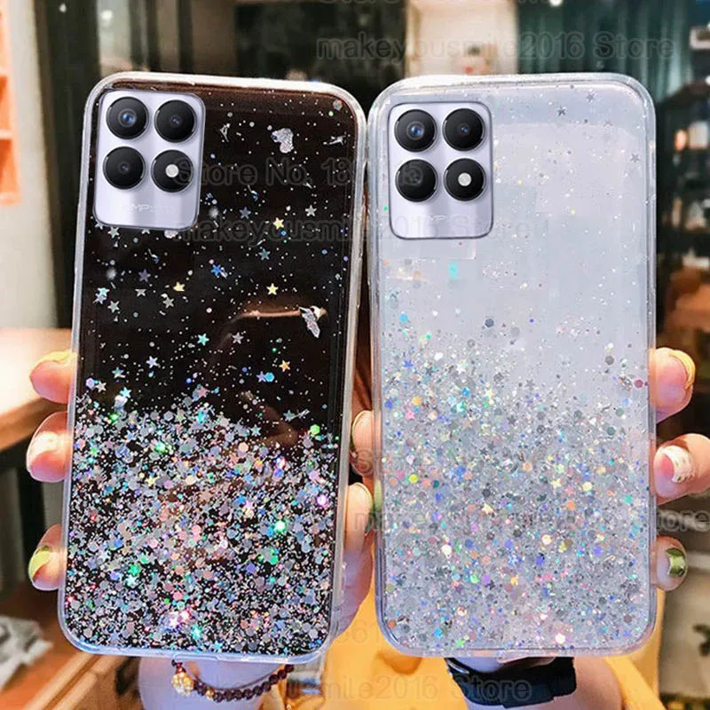 Чехол с блестками и звездами для OPPO Reno 6 Pro A16 A15 A52 A53 A54 A55 A72 A73 A93 A94 5G Realme 8 Pro 8i 7 6 C11 C12 C25, силиконовый чехол