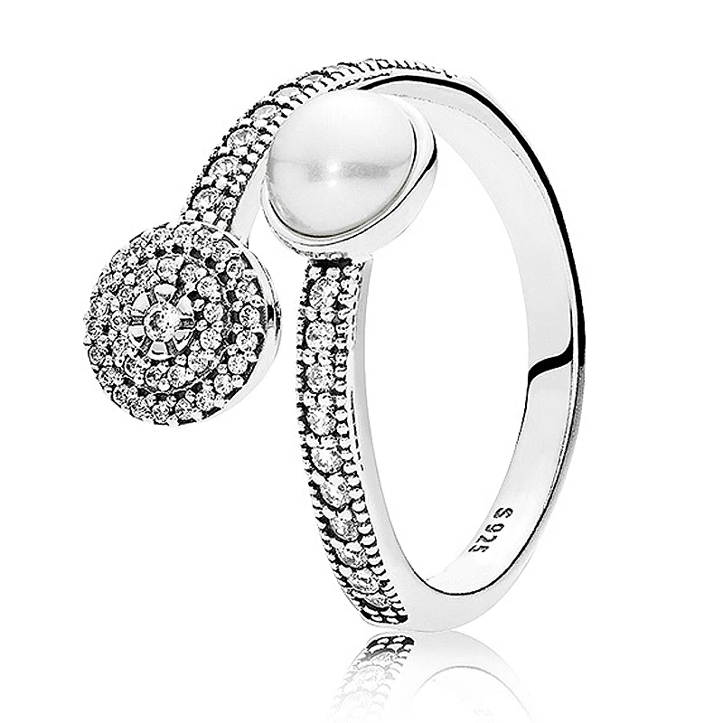 Женское кольцо из серебра 925 пробы, с жемчугом и кристаллом