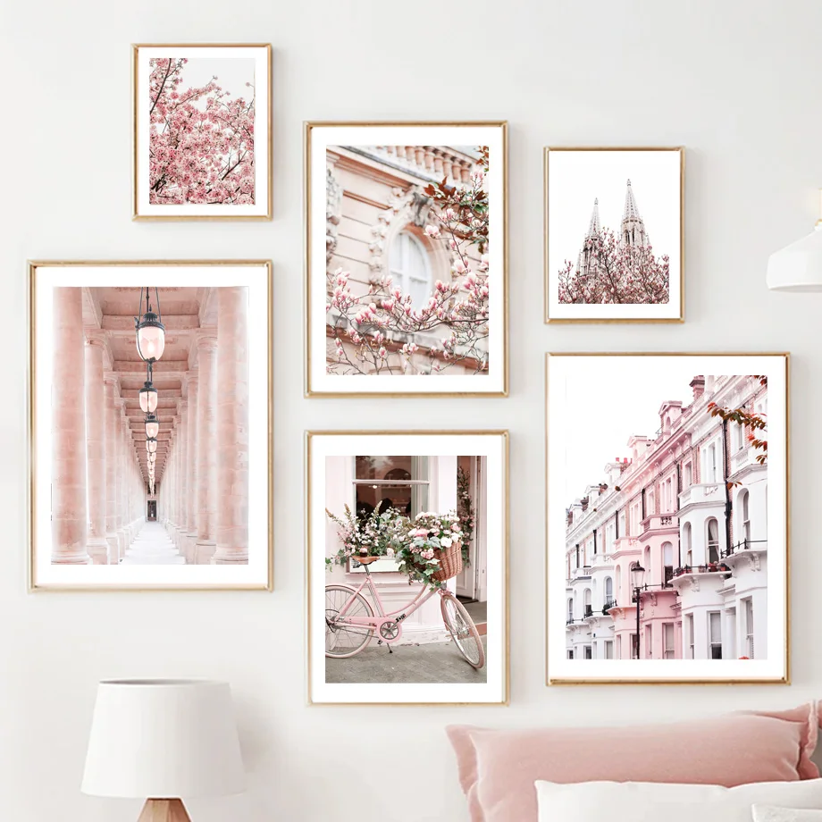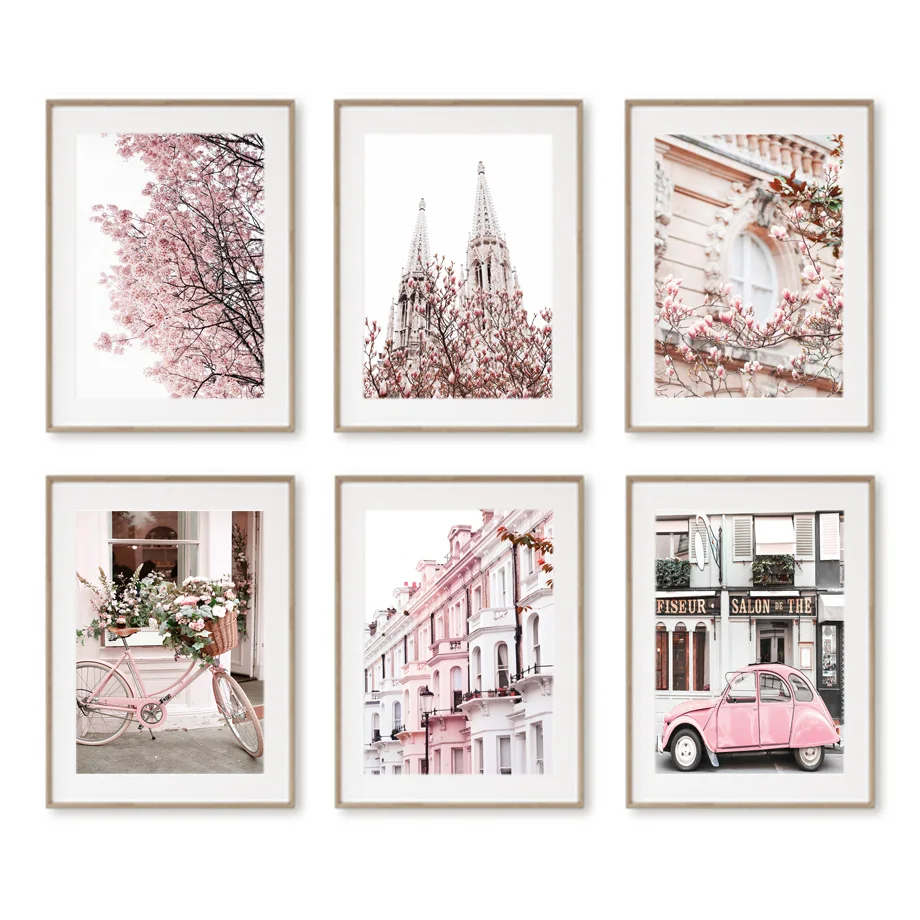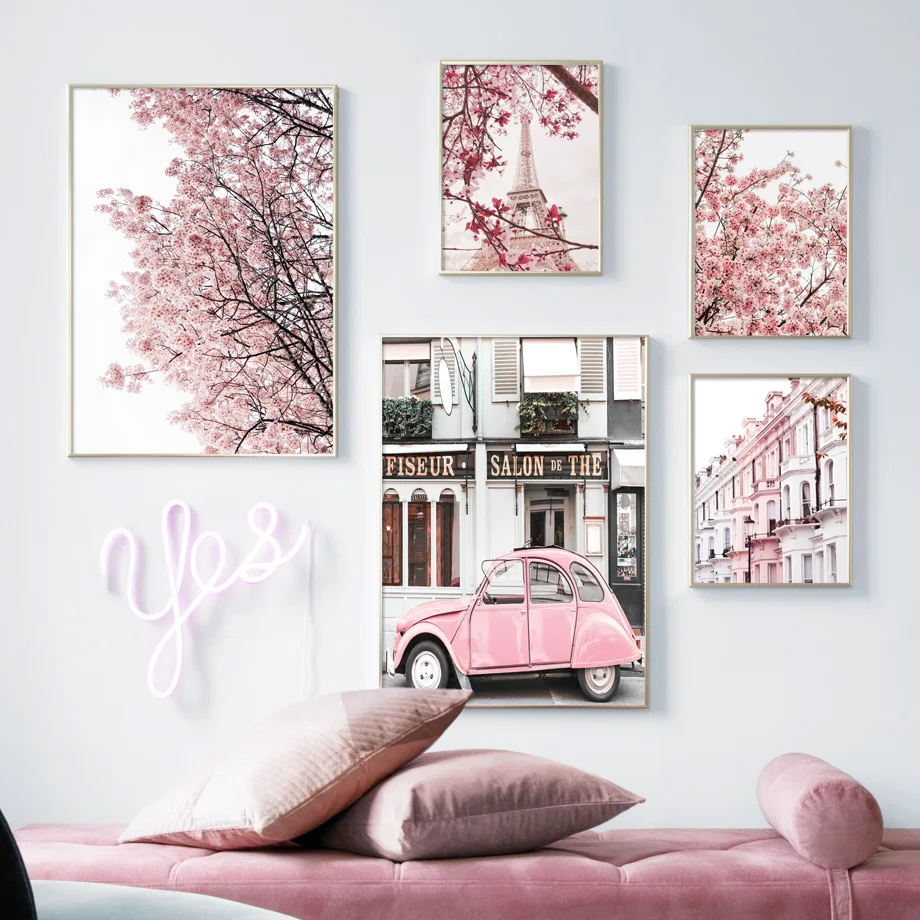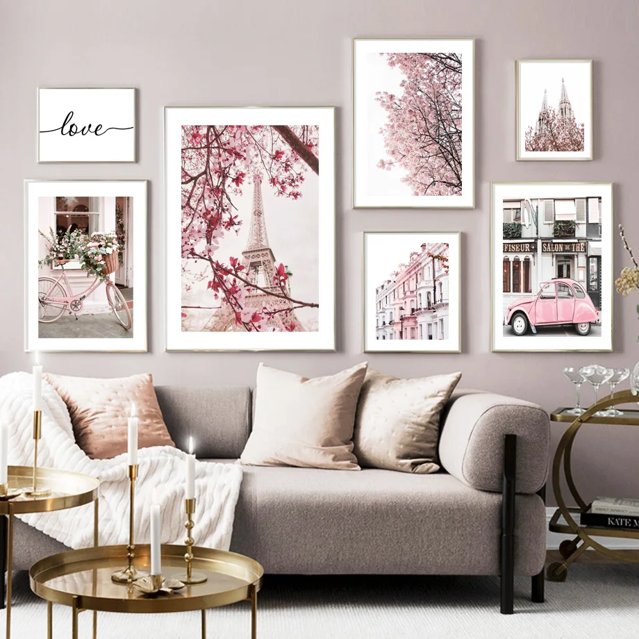 Розовый Париж башня подоконник цветок Автомобиль Велосипед скандина...
