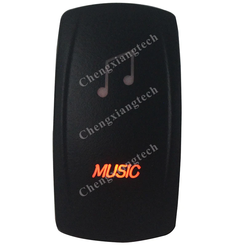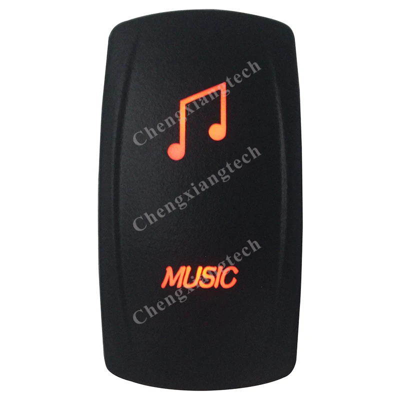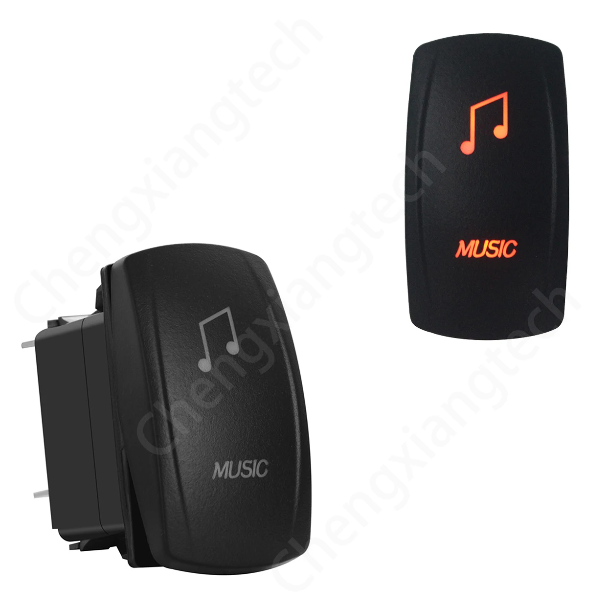 Оранжевый Светодиодный тумблер, переключатель музыки, 5 контактов, SPST вкл.ВЫКЛ., 12 В24 В, переключатель + джемпер, стандарт для автомобиля, лодки, грузовика, водонепроницаемый